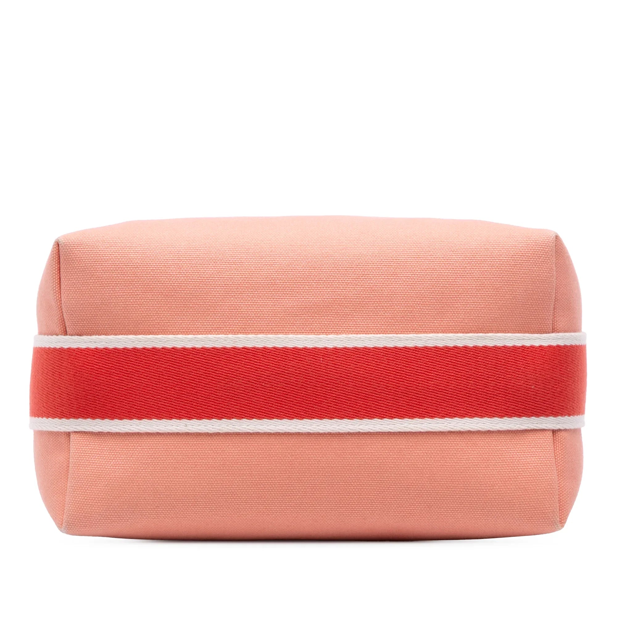 Product Details: Pink Hermès Small Canvas Bride A Brac Case. The Bride-A-Brac features a canvas body, a flat handle, a top zip closure, and interior slip pockets. 4.3" L x 8.1" W x 4.7" D, 1.6" drop. Serial number H103222M 10.