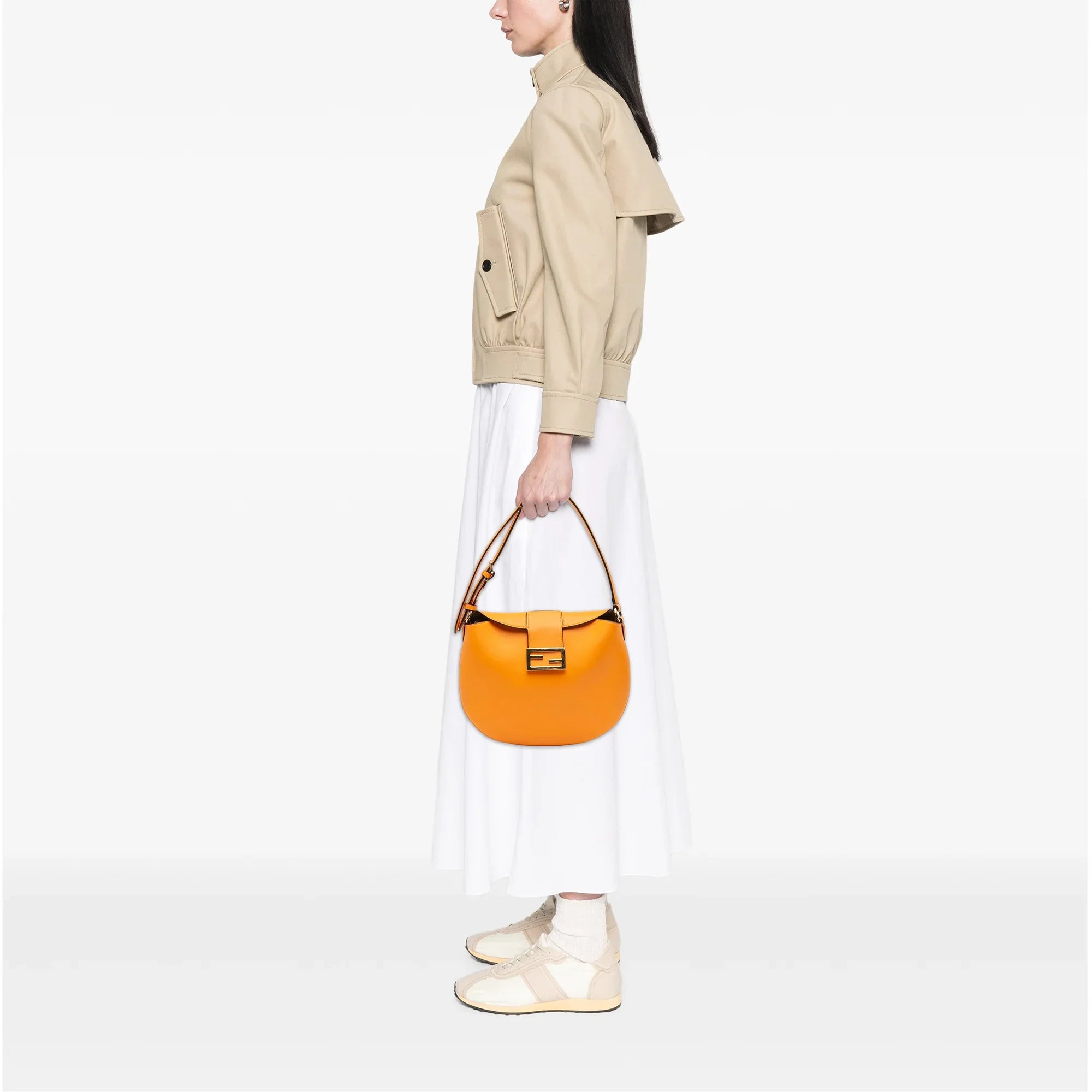 Orange Fendi Small Leather Croissant Hobo Bag