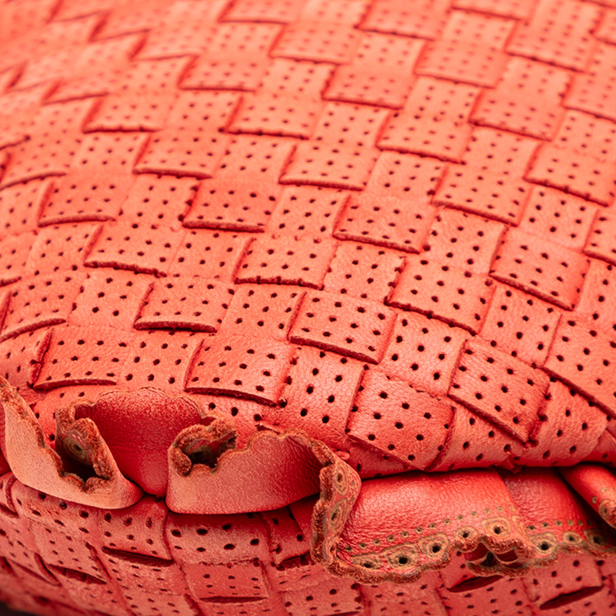 Please note this is a pre-owned item that may display signs of wear consistent with the condition listed above and shown in photos. Designer Revival guarantees this is an authentic Red Bottega Veneta Small Perforated Nappa Intrecciato Veneta Hobo or 100% of your money back. Learn more about our authentication process.