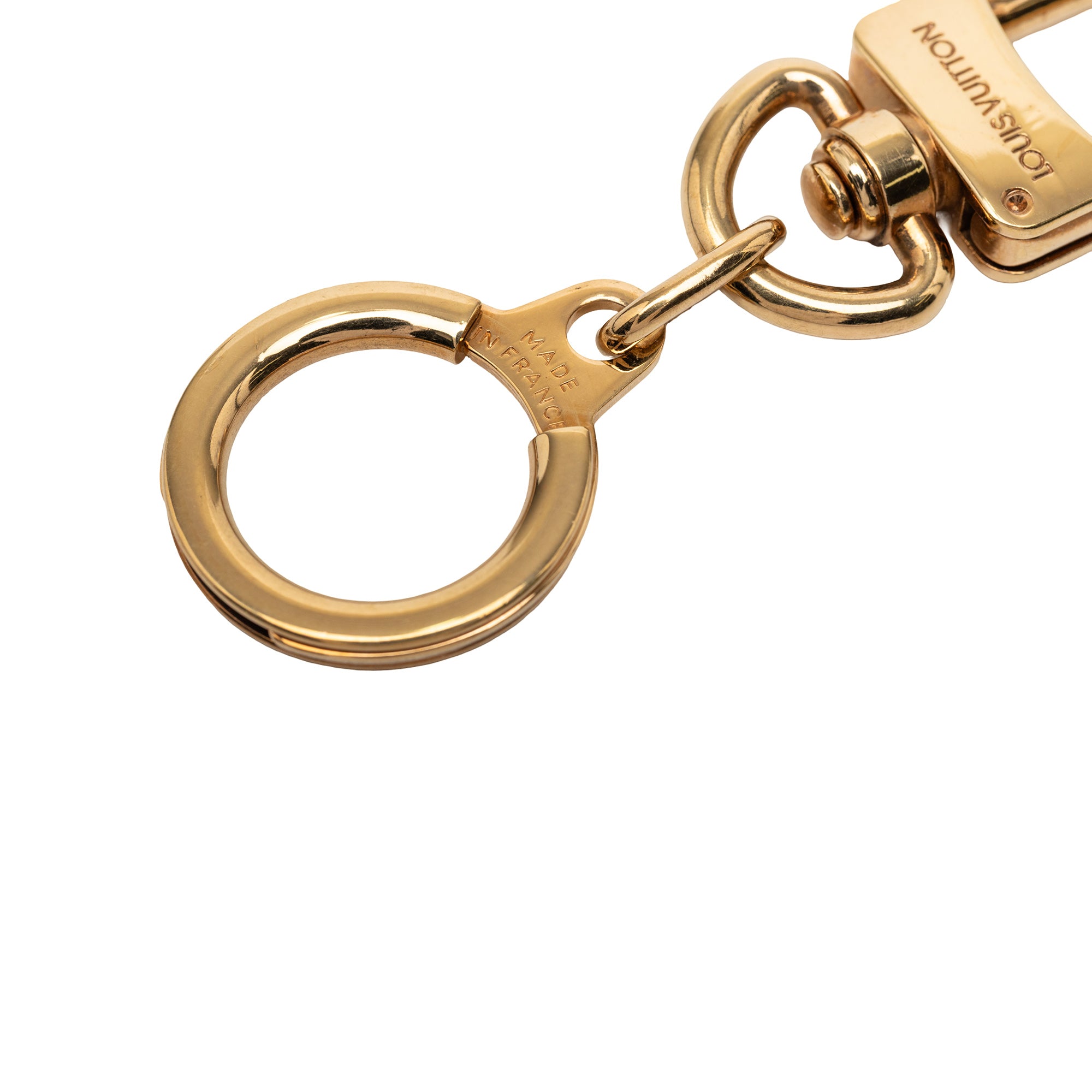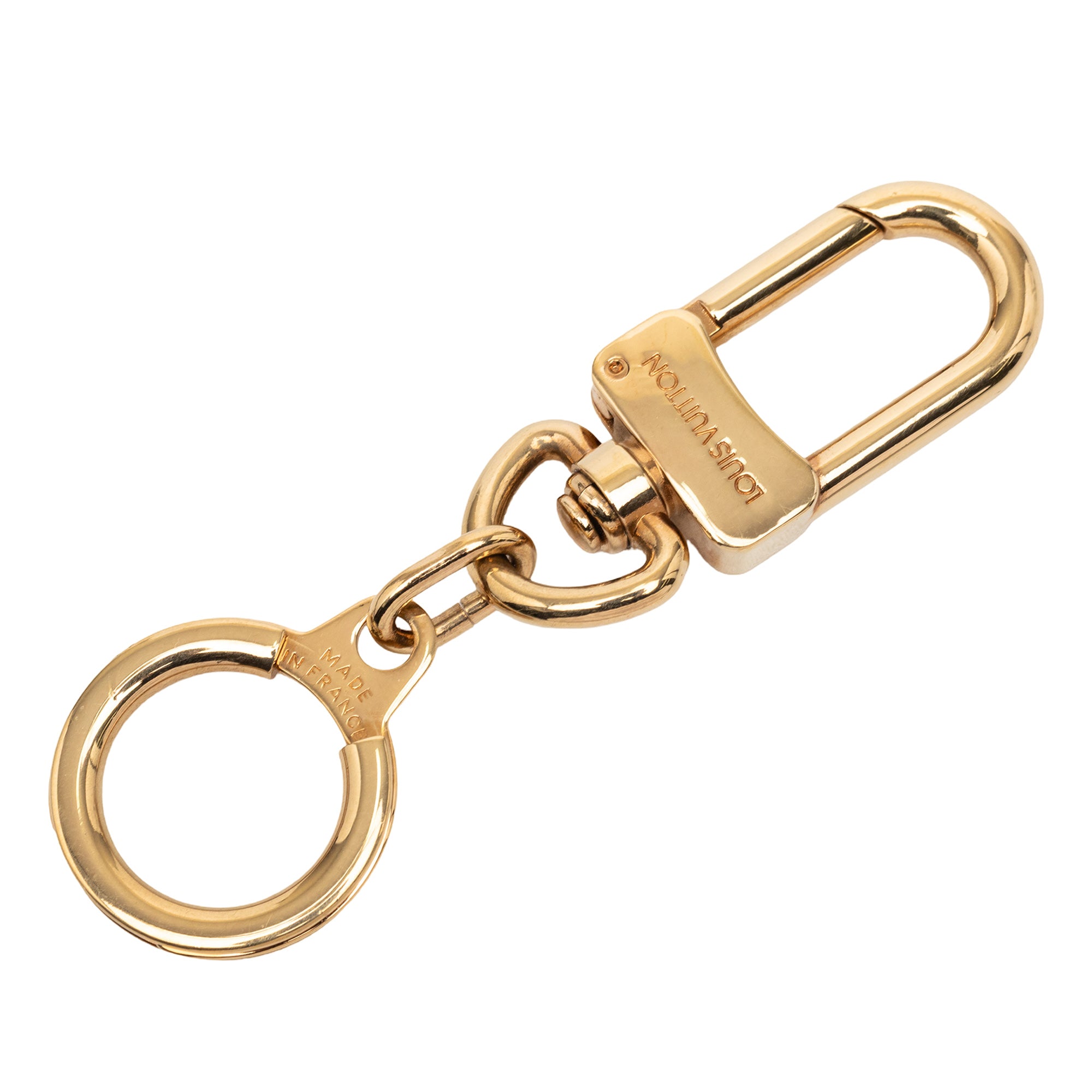 Product Details: Gold Louis Vuitton Gold Plated Bolt Extender Key Ring. This key chain features a gold-tone metal key ring and a hook attachment. 3.2" L x 0.9" W x 0" D.