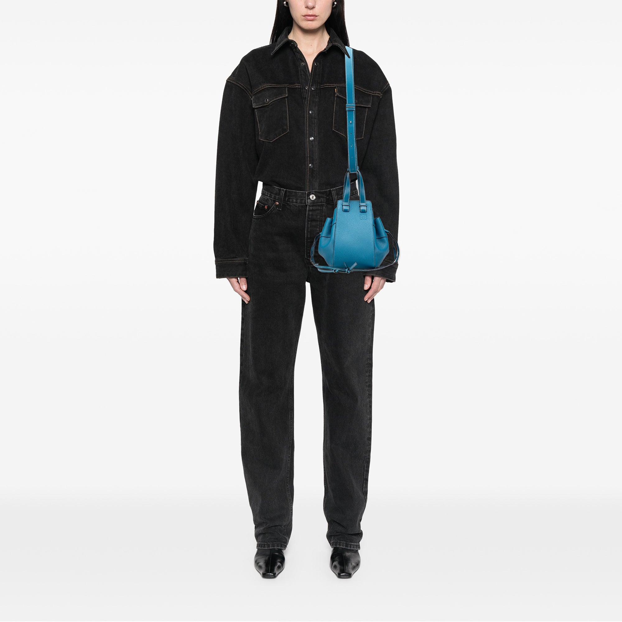 Blue LOEWE Small Grained Calfskin Drawstring Hammock Bag Satchel