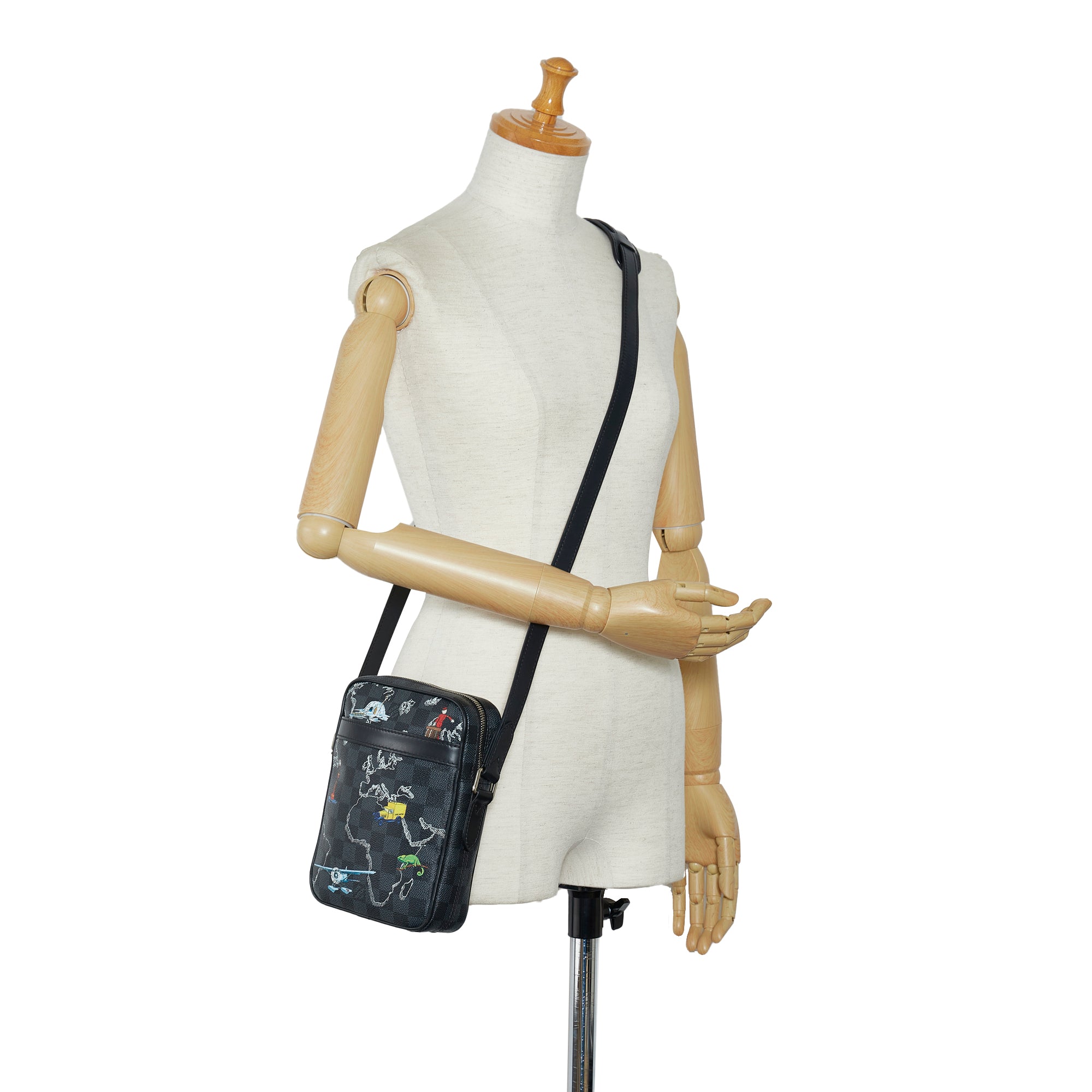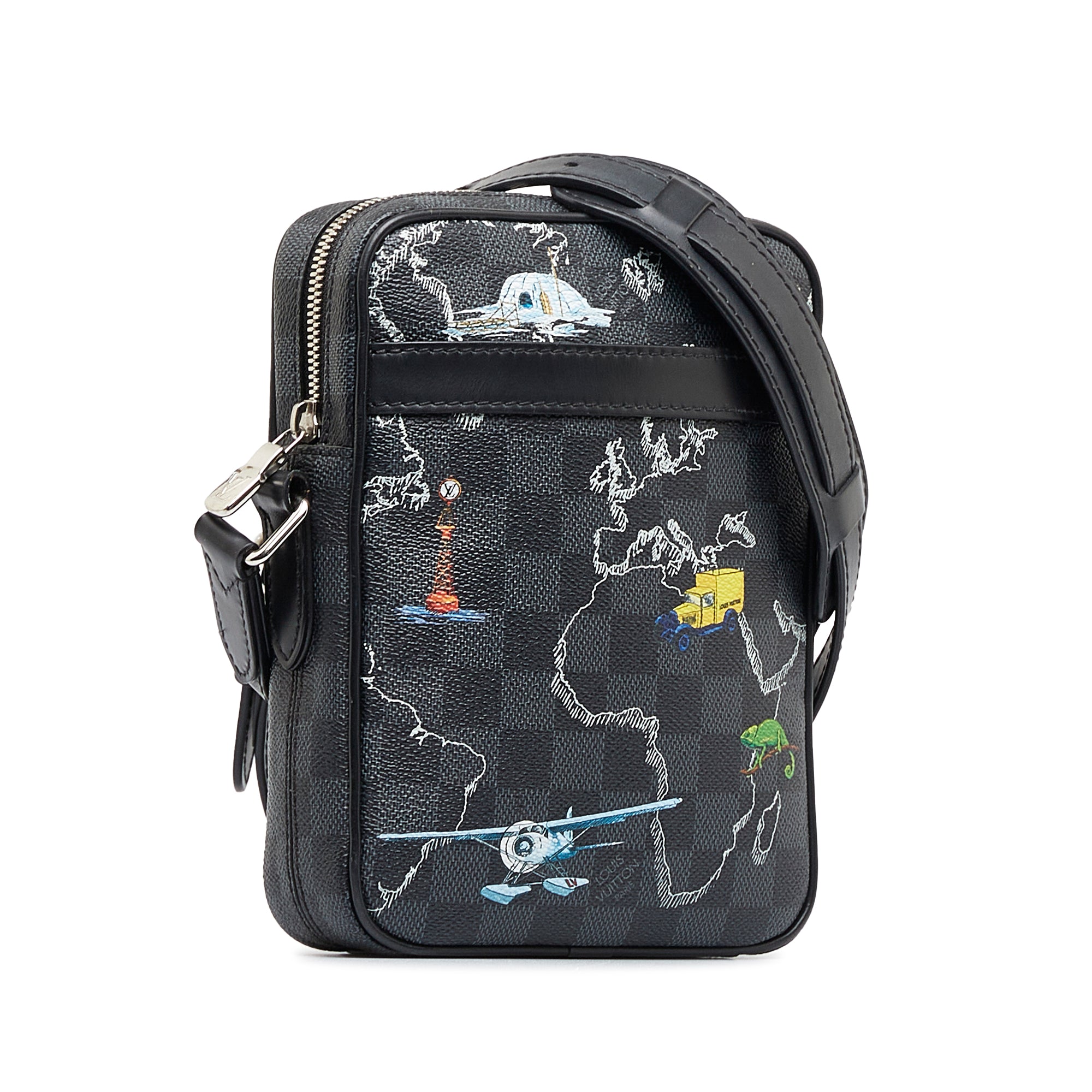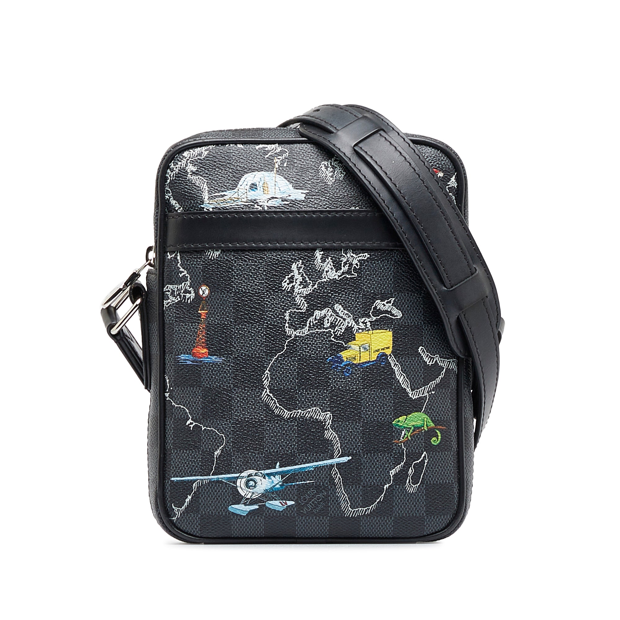 Black Louis Vuitton Damier Graphite Renaissance Map Danube Slim PM Crossbody Bag
