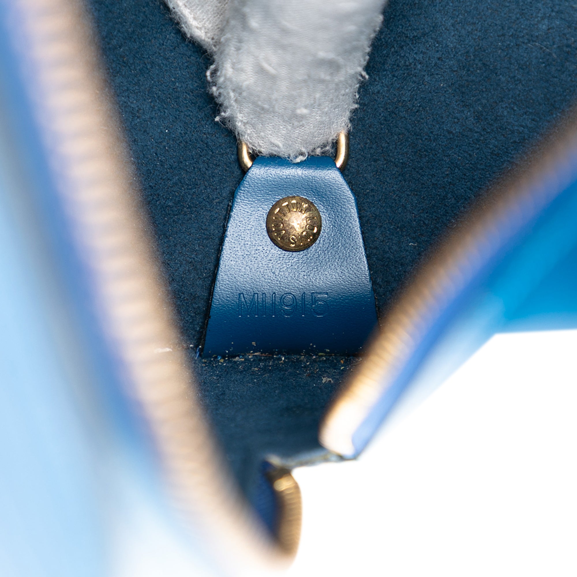 Product Details: Blue Louis Vuitton Epi Soufflot Shoulder Bag. The Soufflot features an epi leather body, flat leather straps, a top zip closure, and an interior slip pocket. 6.7" L x 12" W x 5.7" D, 6.7" drop. Serial number MI1915.