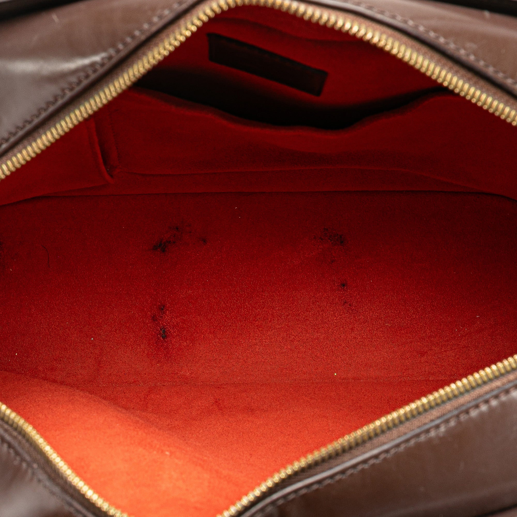 Condition: Pre-owned. Good. Exterior Back Worn. Exterior Back stained with Other. Exterior Bottom Worn. Exterior Bottom stained with Other. Exterior Front Worn. Exterior Front stained with Other. Exterior Handle Out Of Shape, Worn. Exterior Handle stained with Other. Interior Pocket stained with Other. Interior Lining Worn. Interior Lining stained with Other. Exterior Pocket stained with Other. Practical Attachment Scratched. Exterior Top Creased. Exterior Top stained with Other. Zipper Scratched.