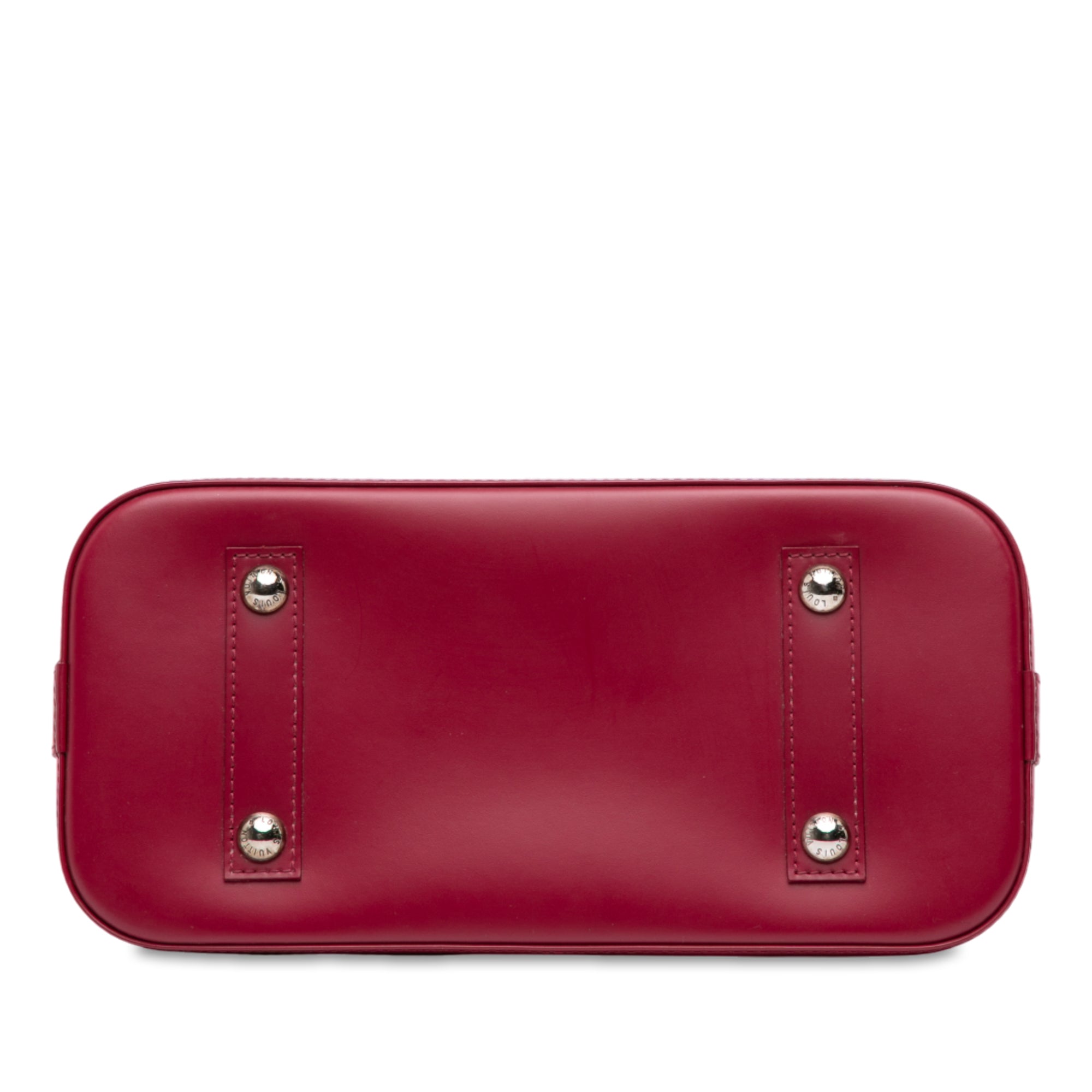 Product Details: Pink Louis Vuitton Epi Alma PM Handbag. The Alma PM features an epi leather body, rolled leather handles, a top zip closure, and an interior slip pocket. 9.3" L x 12.4" W x 6.1" D, 3.7" drop. Serial number BA0163.