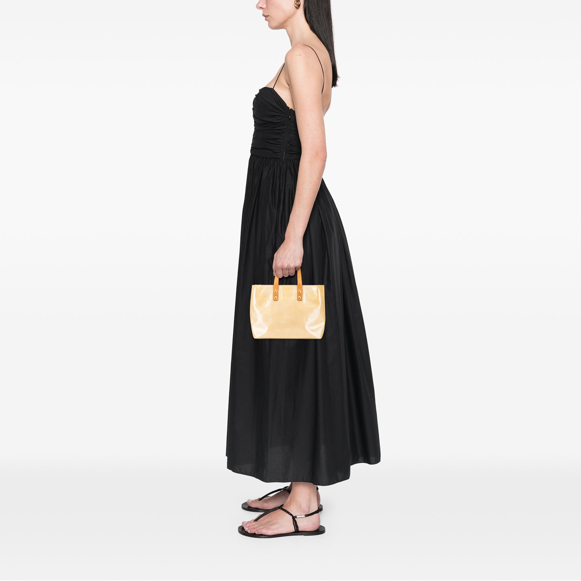 Product Details: Tan Louis Vuitton Monogram Vernis Reade PM Handbag. The Reade PM features a monogram vernis leather body, flat vachetta leather handles, an open top, and an interior zip pocket. 6.9" L x 8.7" W x 3.9" D, 3.9" drop. Serial number MI1021.