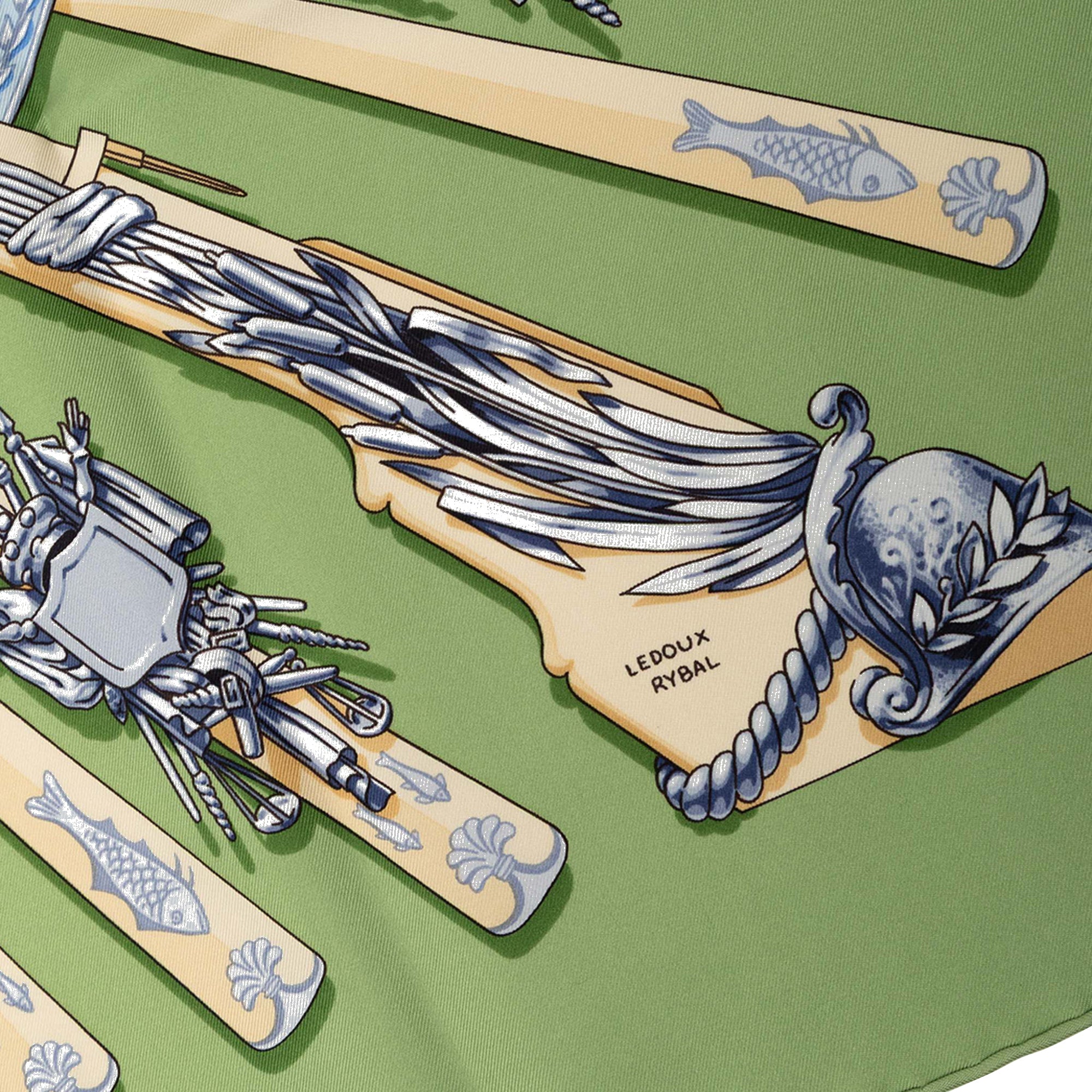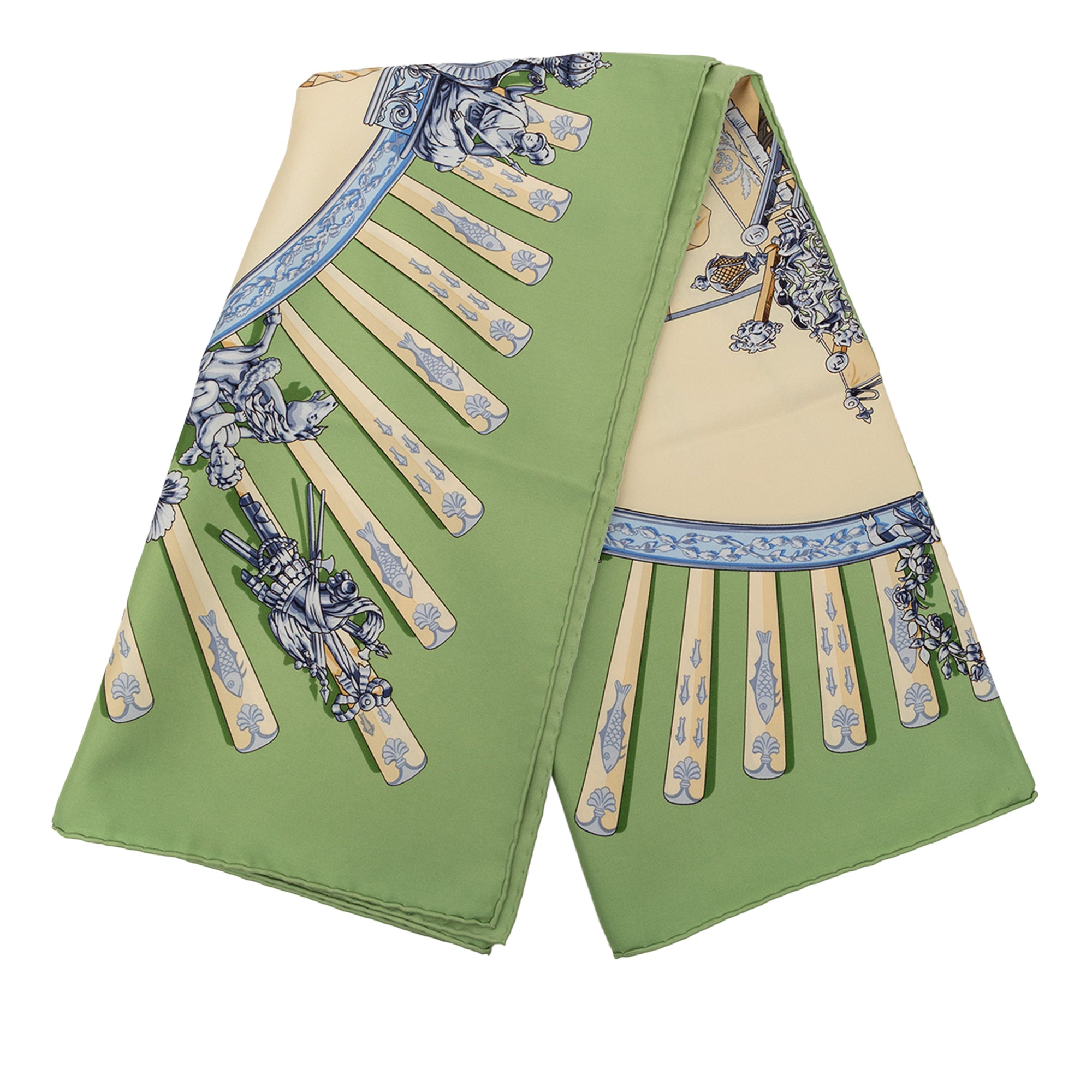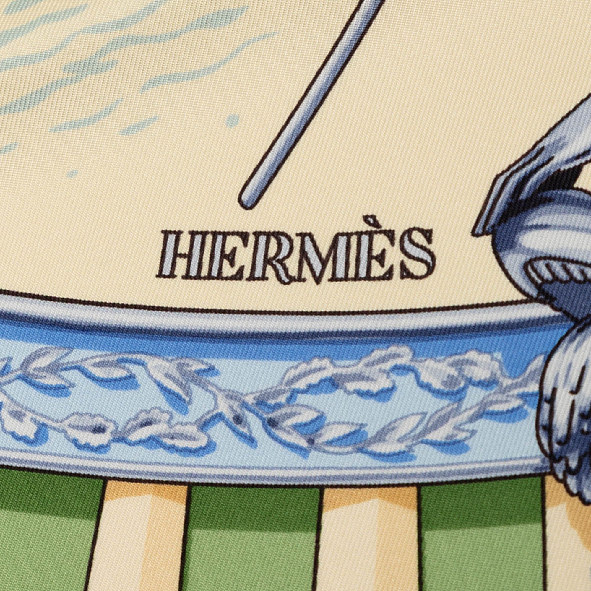 Green Hermès La Marine a Rames Silk Scarf 90