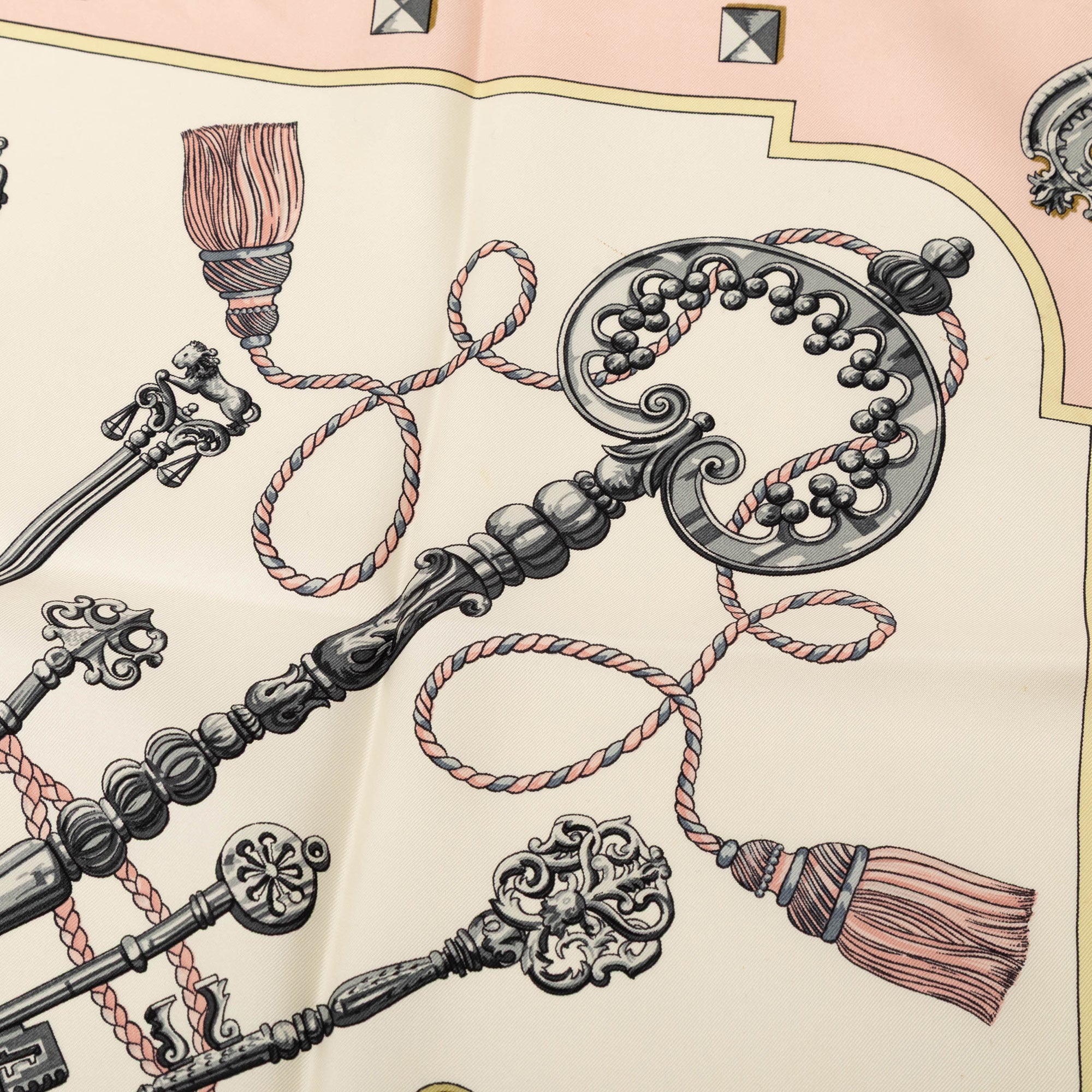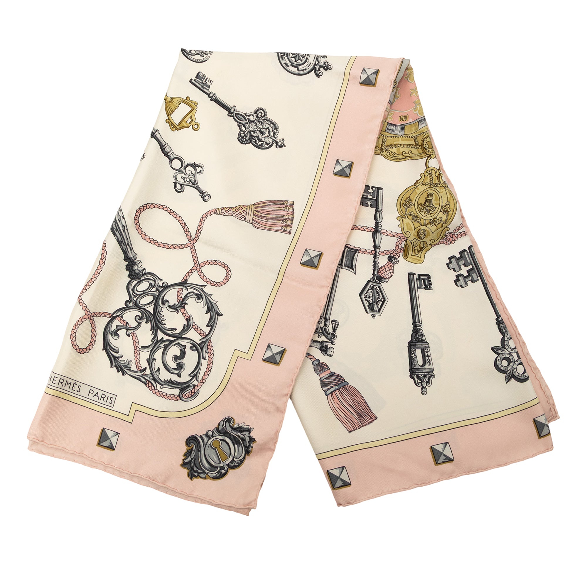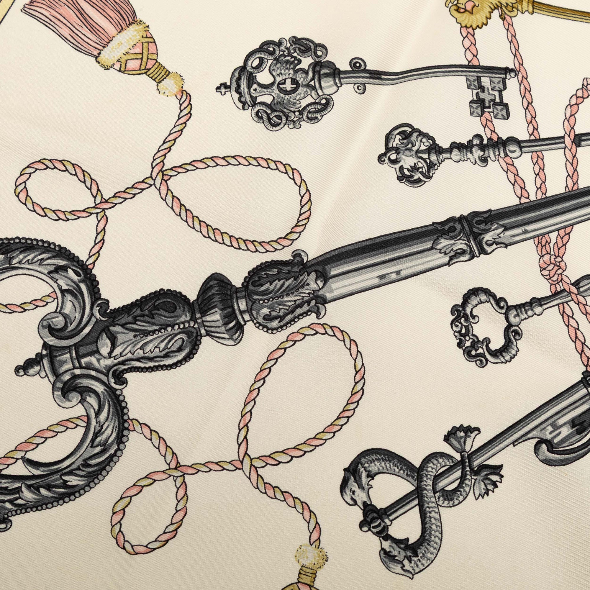 Please note this is a pre-owned item that may display signs of wear consistent with the condition listed above and shown in photos. Designer Revival guarantees this is an authentic White Hermès Les Cles Silk Scarf 90 Scarves or 100% of your money back. Learn more about our authentication process.