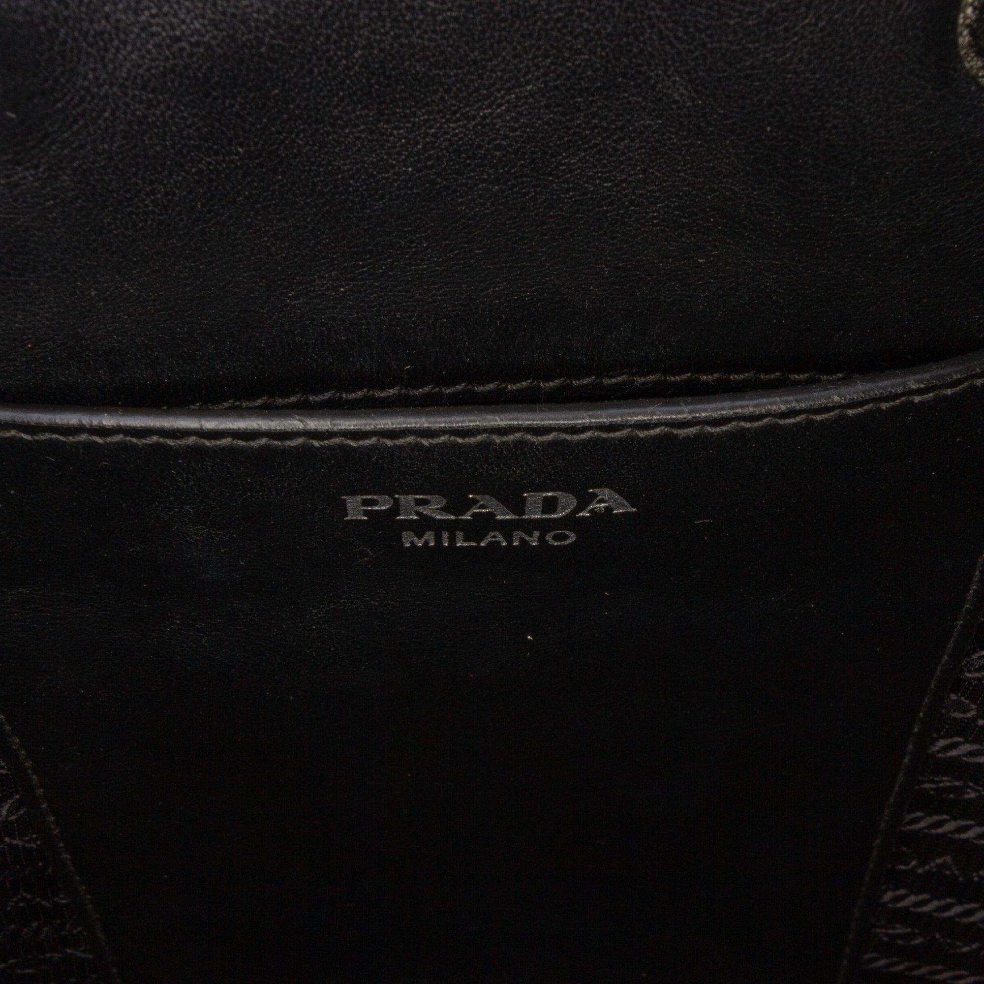 Black Prada Saffiano Trimmed Tessuto Bucket Bag Satchel