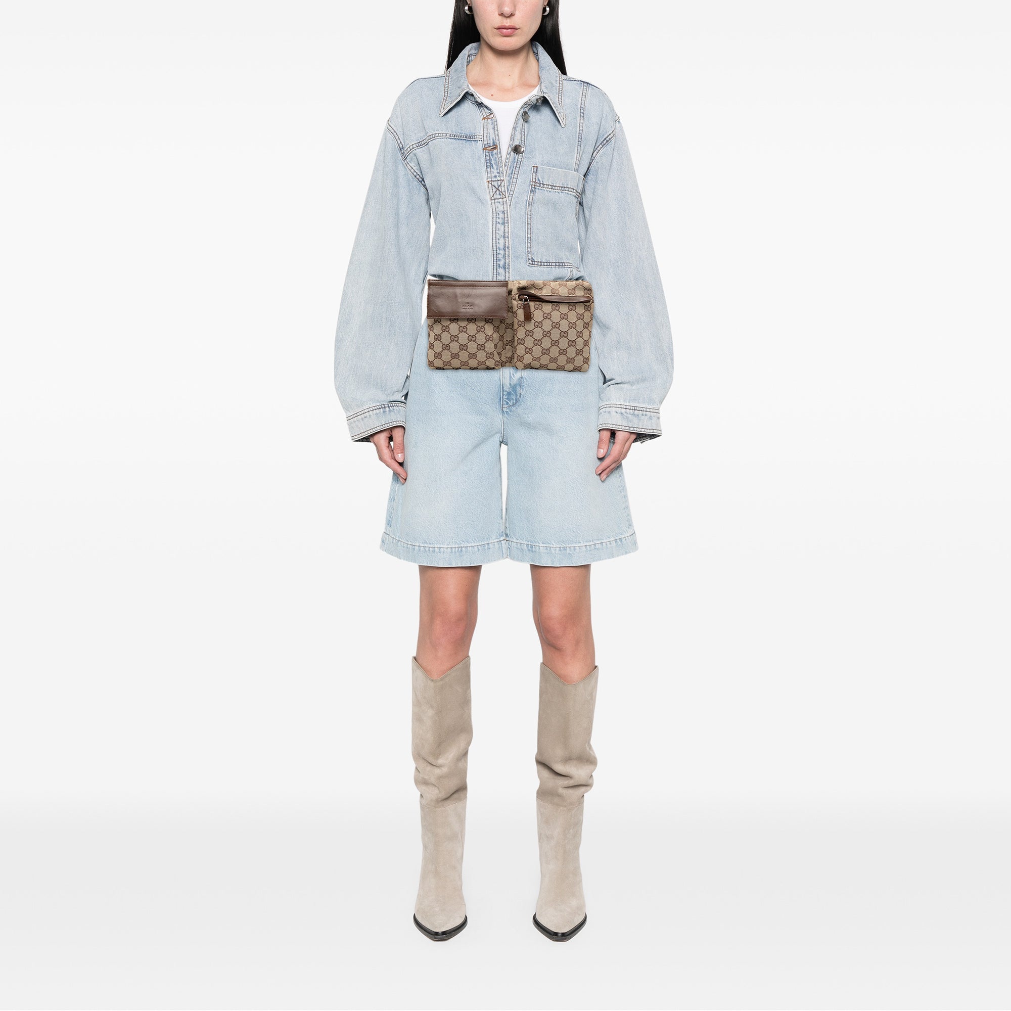 Brown Gucci GG Canvas Double Pocket Belt Bag