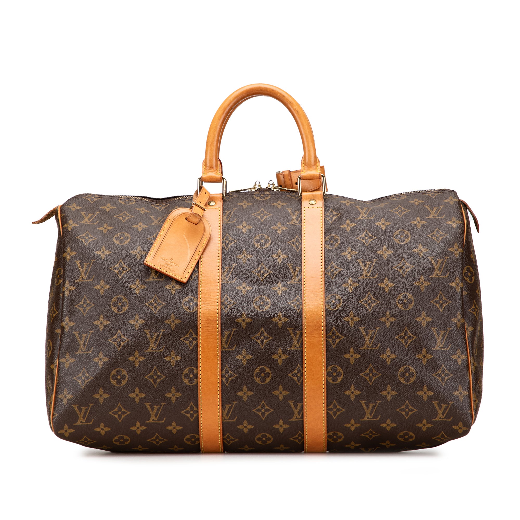 Please note this is a pre-owned item that may display signs of wear consistent with the condition listed above and shown in photos. Designer Revival guarantees this is an authentic Brown Louis Vuitton Monogram Keepall 45 Travel Bag or 100% of your money back. Learn more about our authentication process.