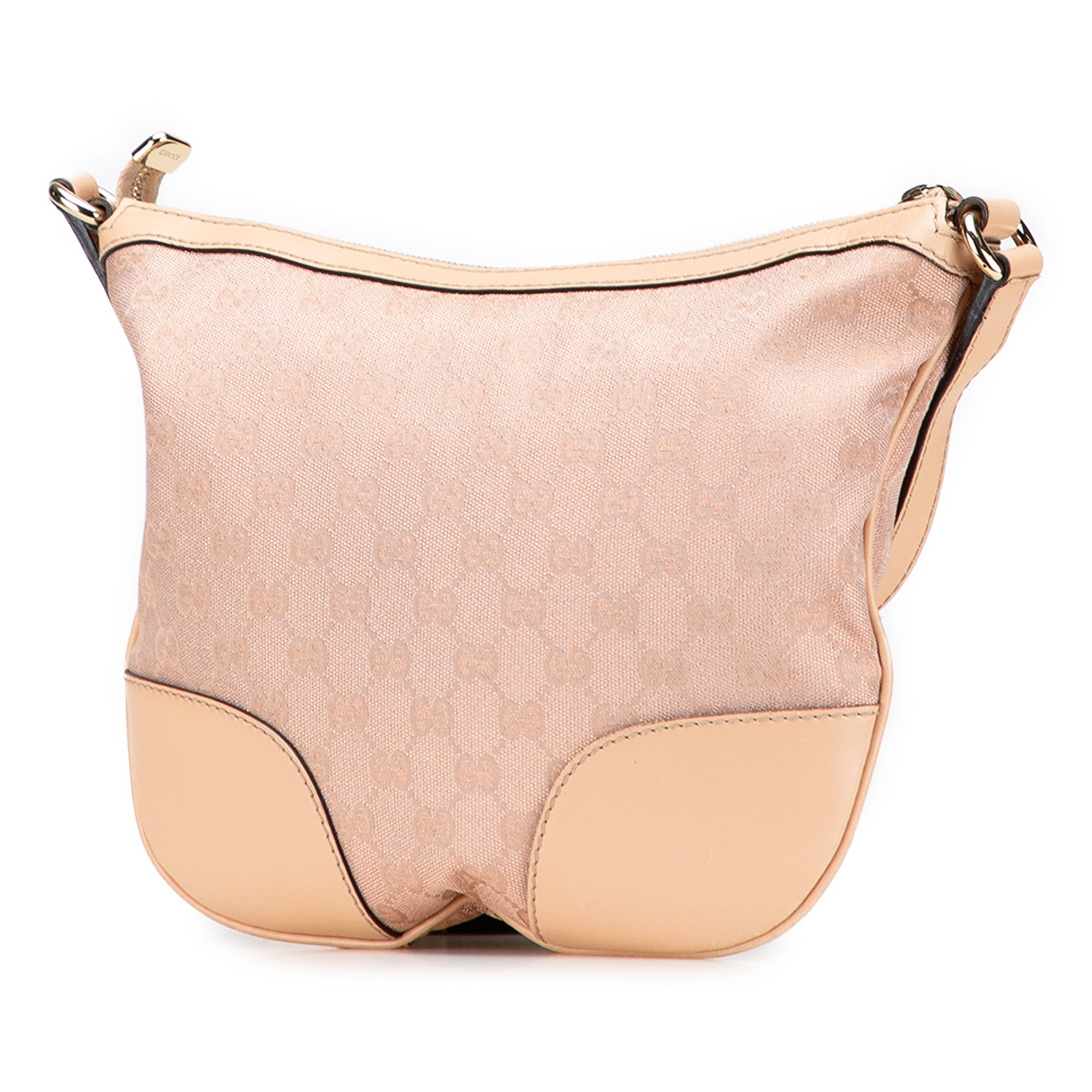 Product Details: Pink Gucci GG Canvas Lovely Crossbody . This crossbody bag features a canvas body with leather trim, an adjustable flat leather strap, a top zip closure, and interior zip and slip pockets. 9.3" L x 10.6" W x 0.4" D. Serial number 257072 001013.