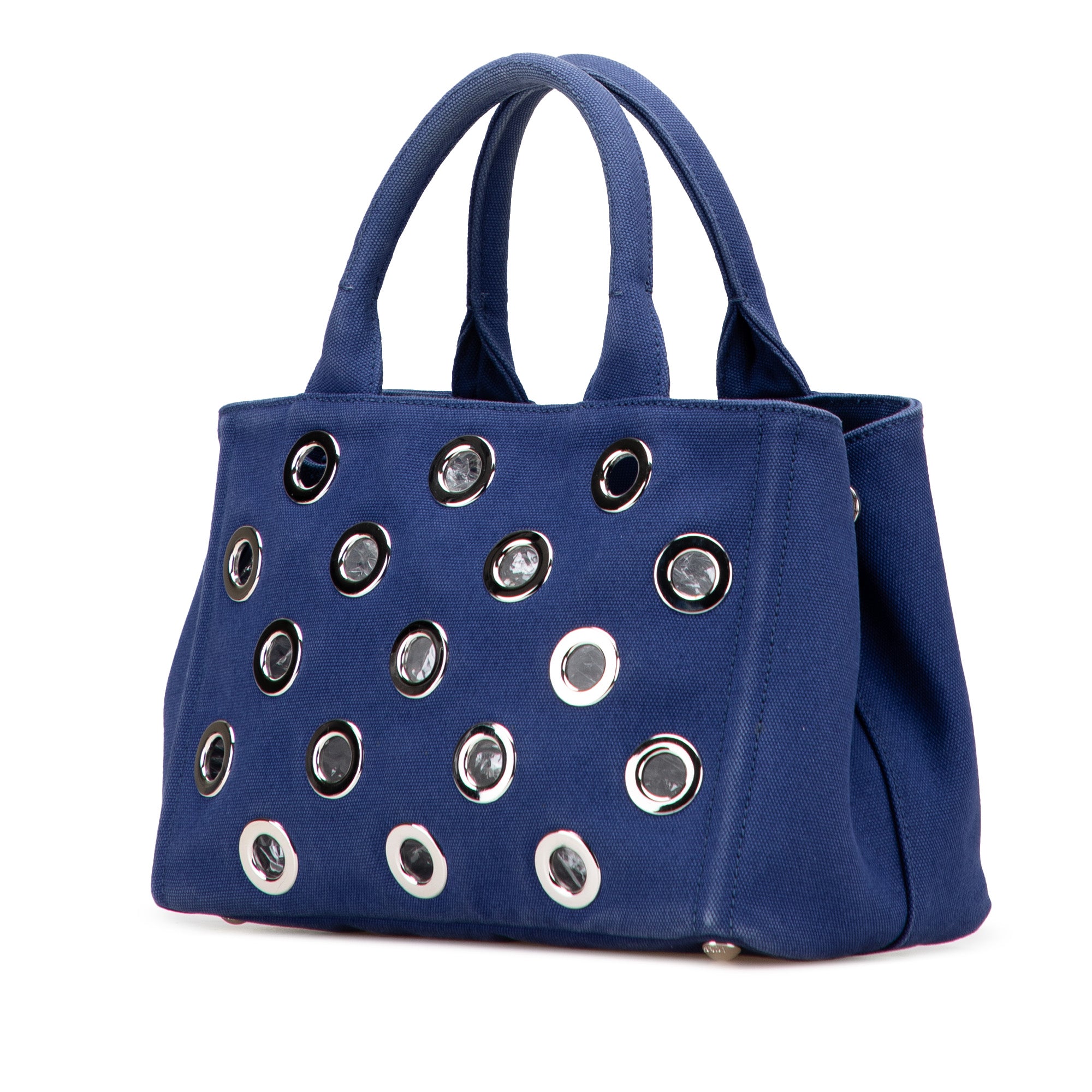 Blue Prada Small Canvas Canapa Grommet Satchel