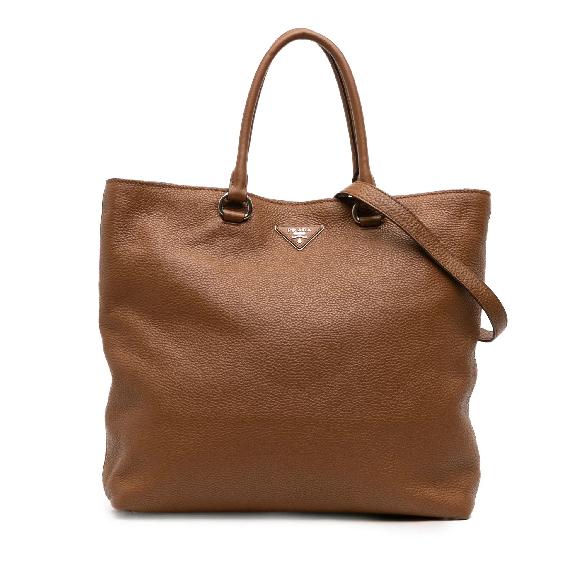 Brown Prada Vitello Daino Open Convertible Tote Satchel