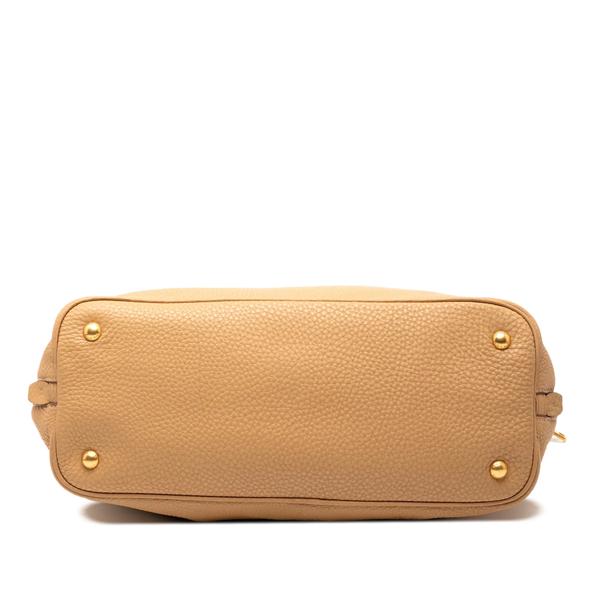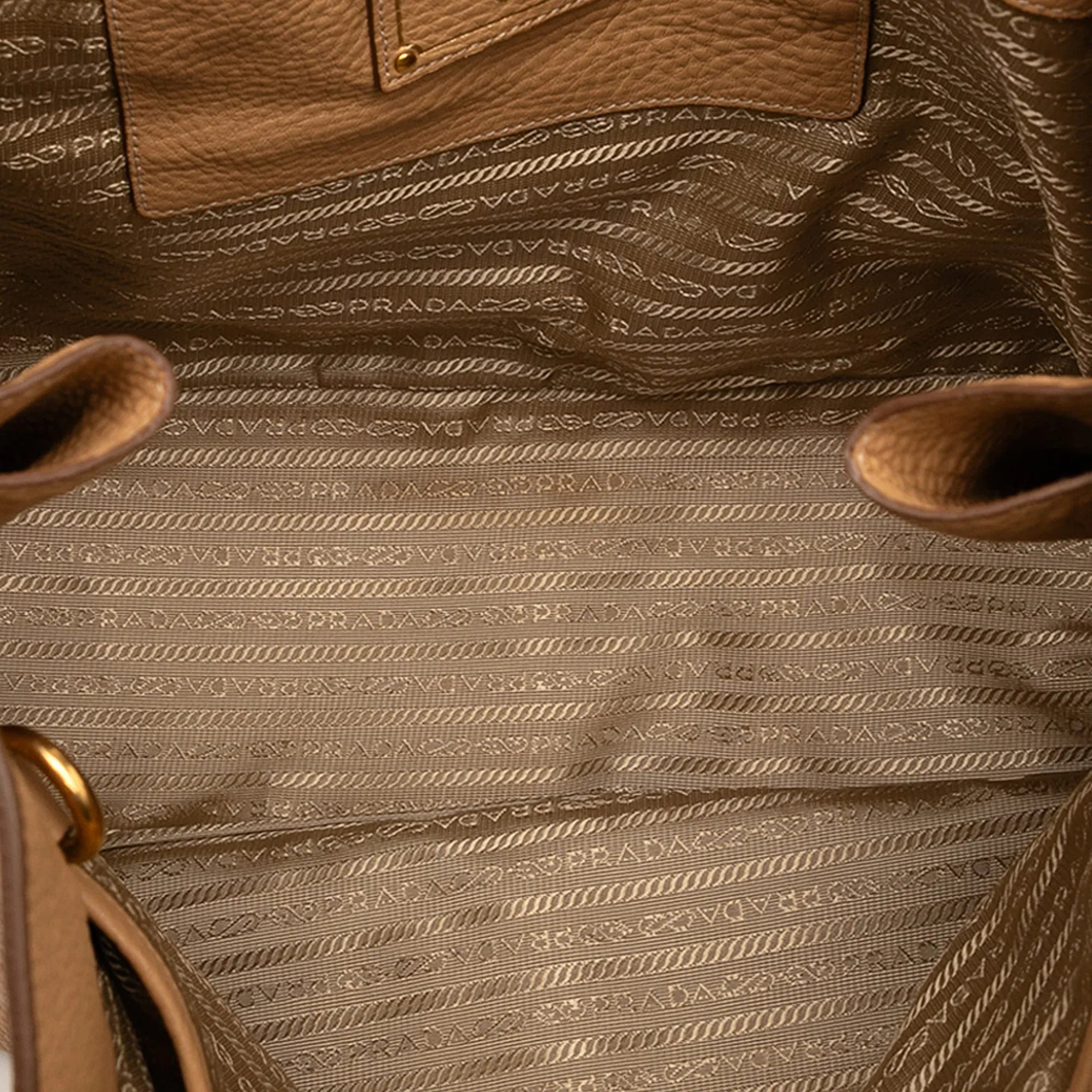 Brown Prada Vitello Daino Side Zip Convertible Tote Satchel
