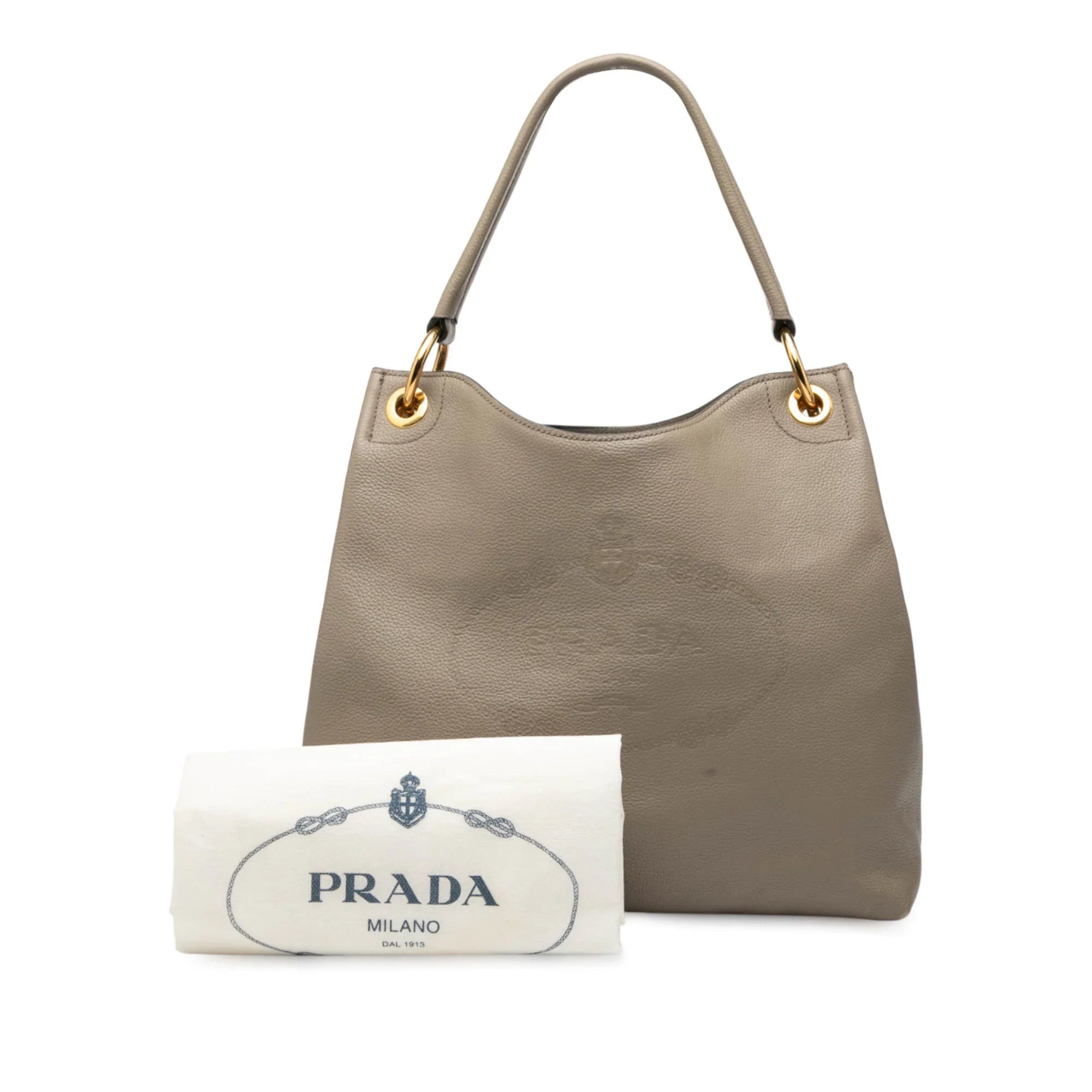 Please note this is a pre-owned item that may display signs of wear consistent with the condition listed above and shown in photos. Designer Revival guarantees this is an authentic Gray Prada Vitello Phenix Logo Tote or 100% of your money back. Learn more about our authentication process.