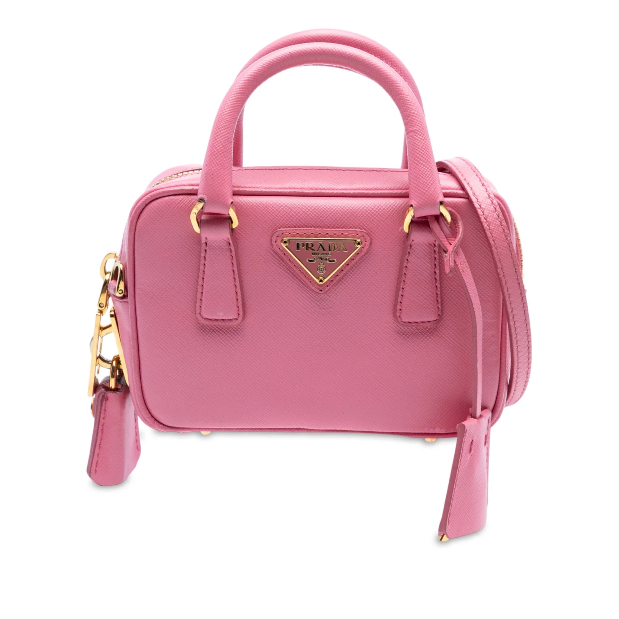 Pink Prada Mini Saffiano Lux Bauletto Bag Satchel