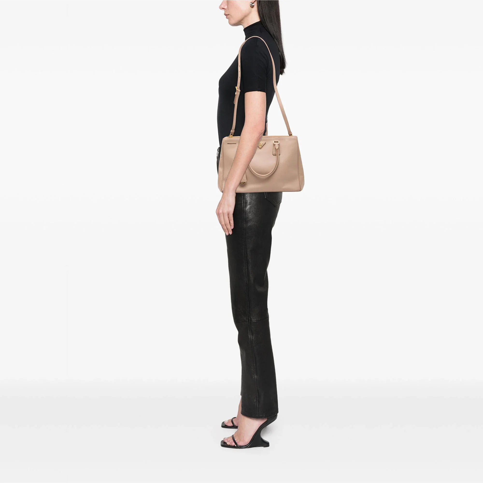 Tan Prada Medium Saffiano Lux Galleria Double Zip Satchel
