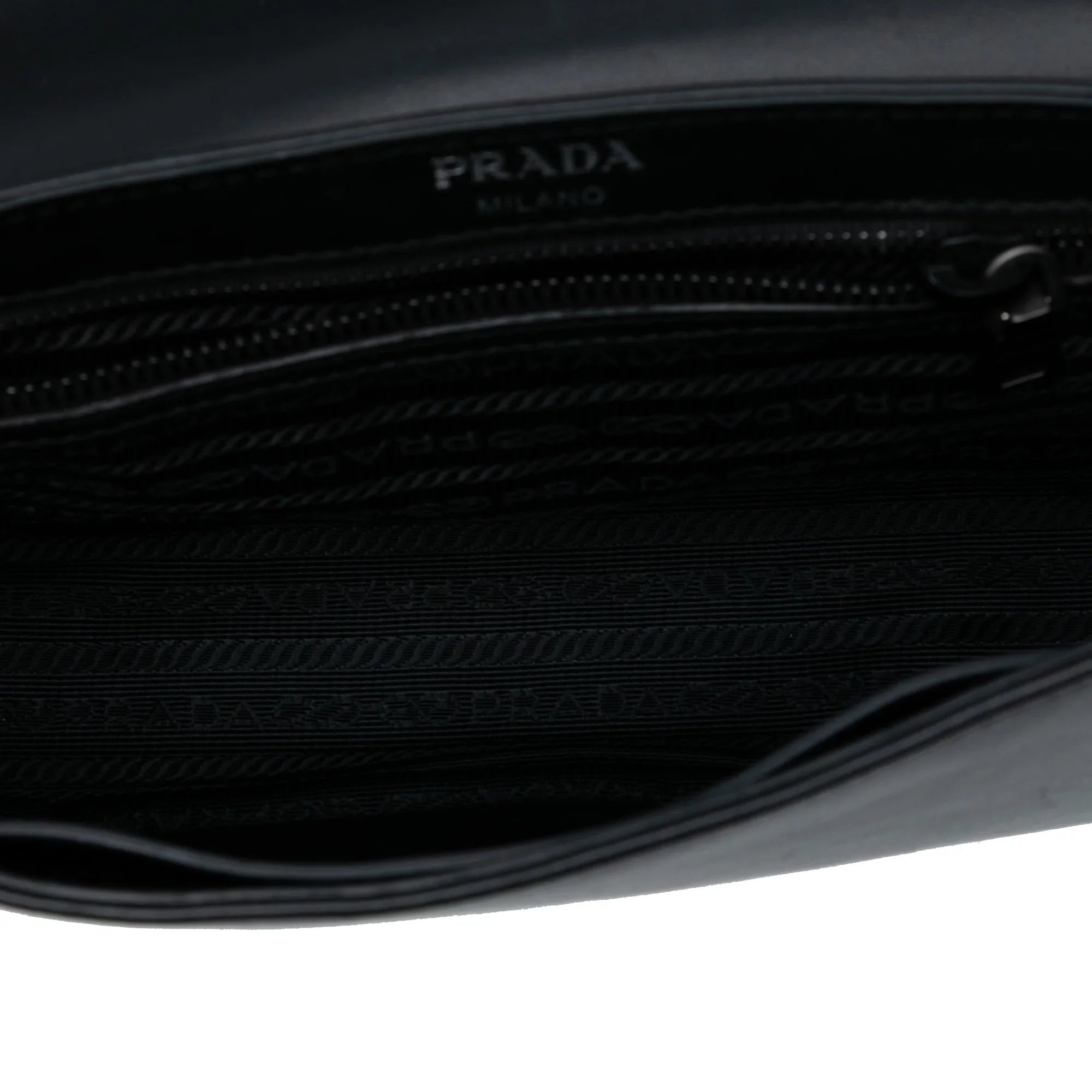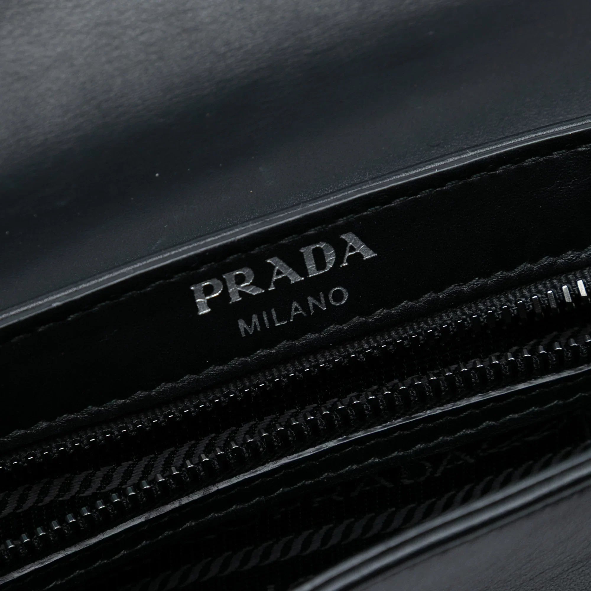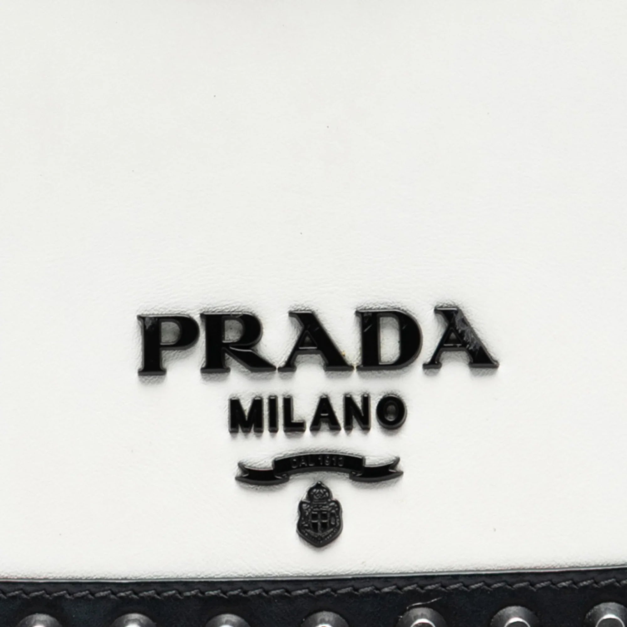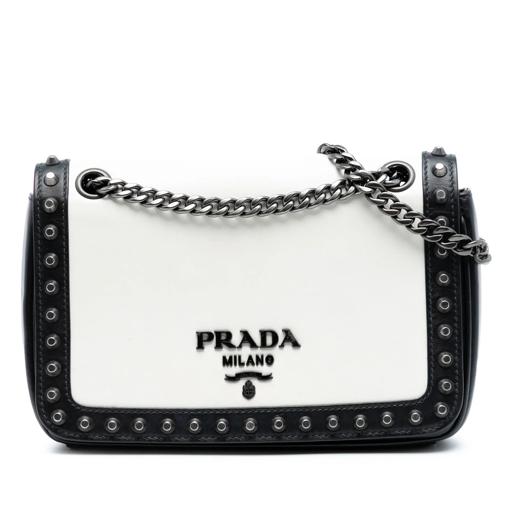White Prada Small Studded Glace Calf Chain Flap Shoulder Bag