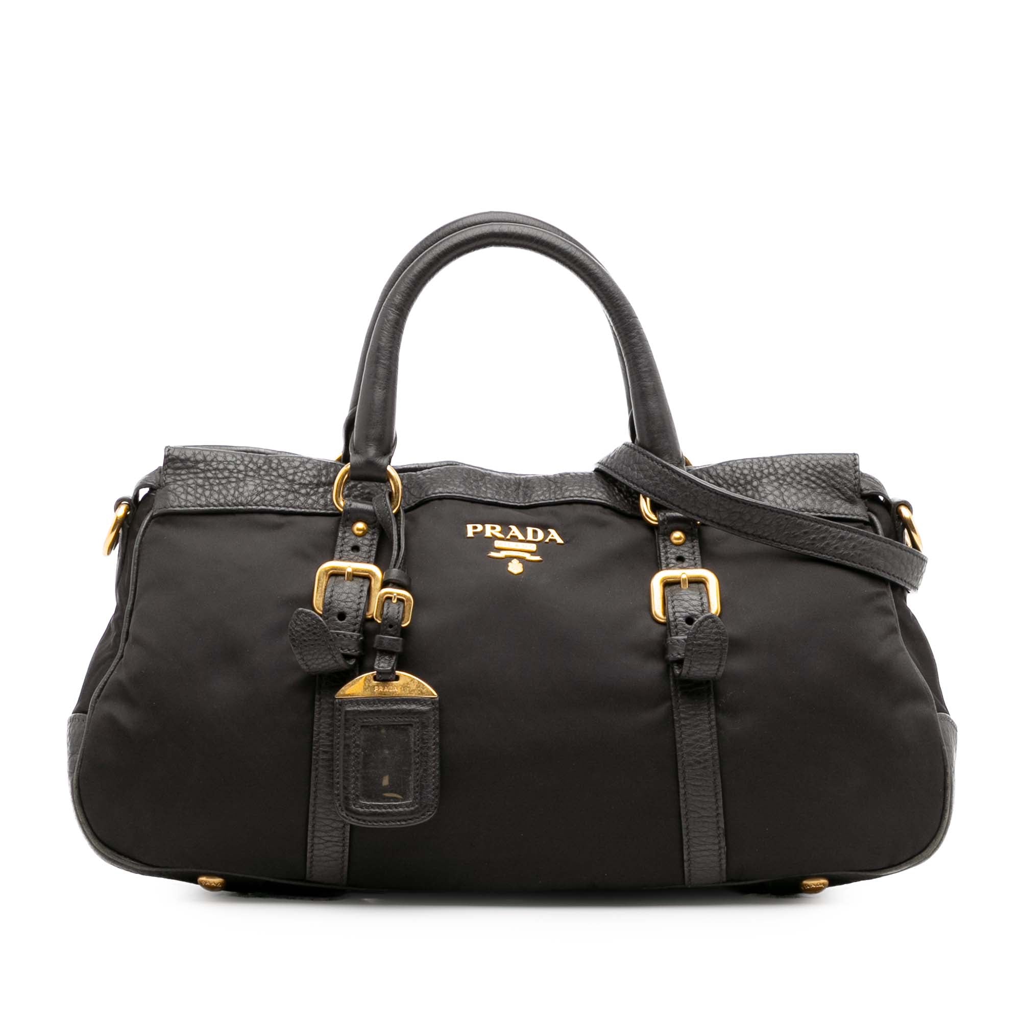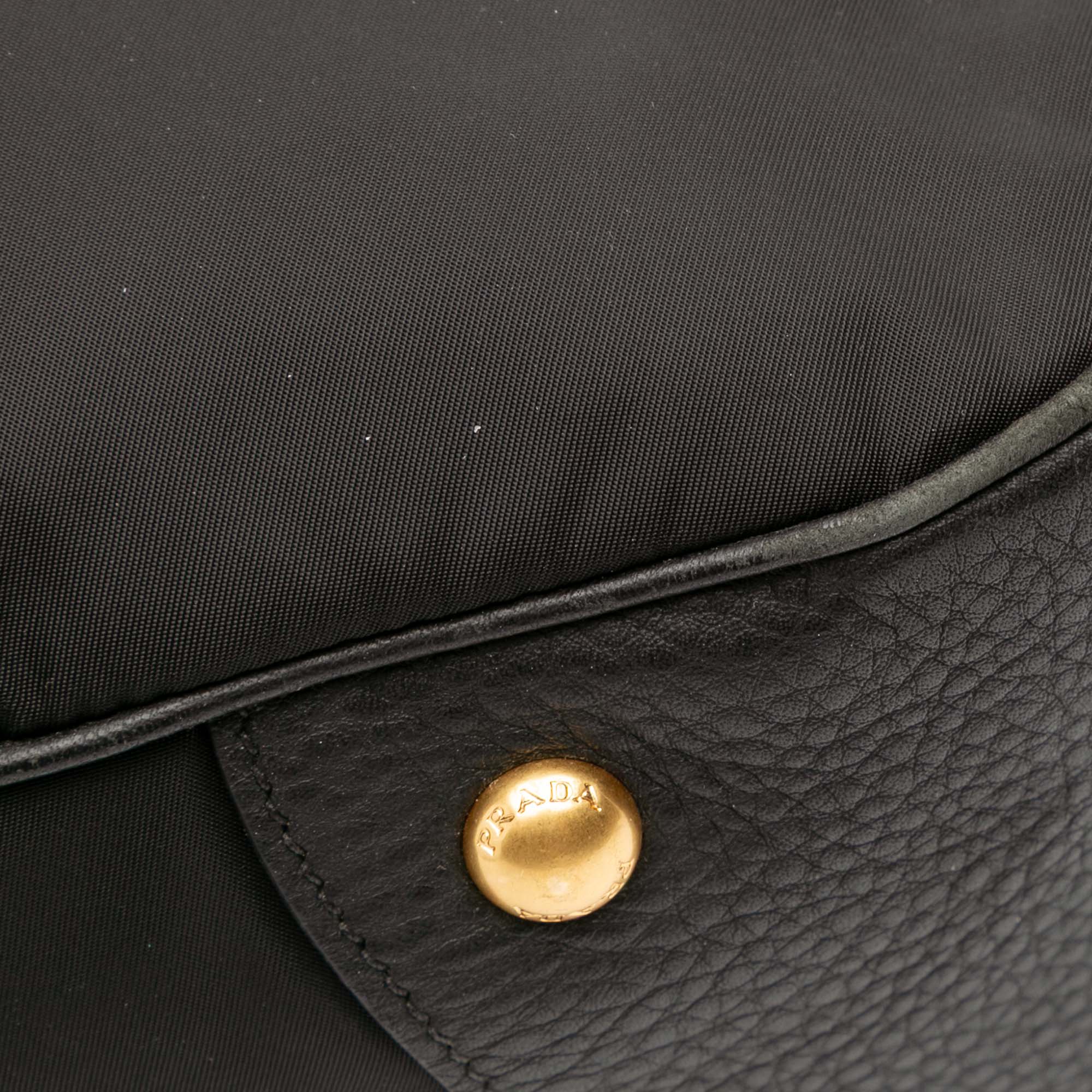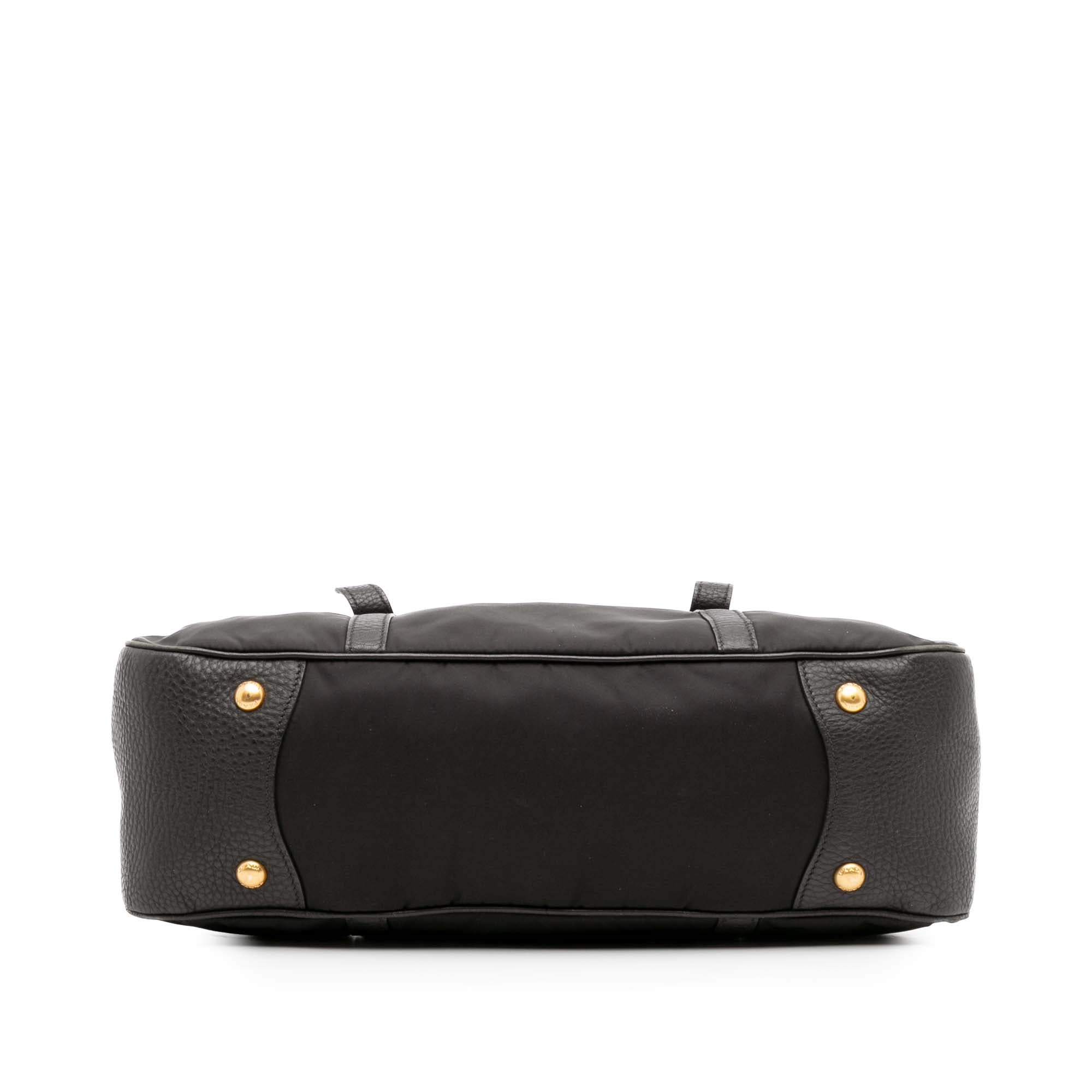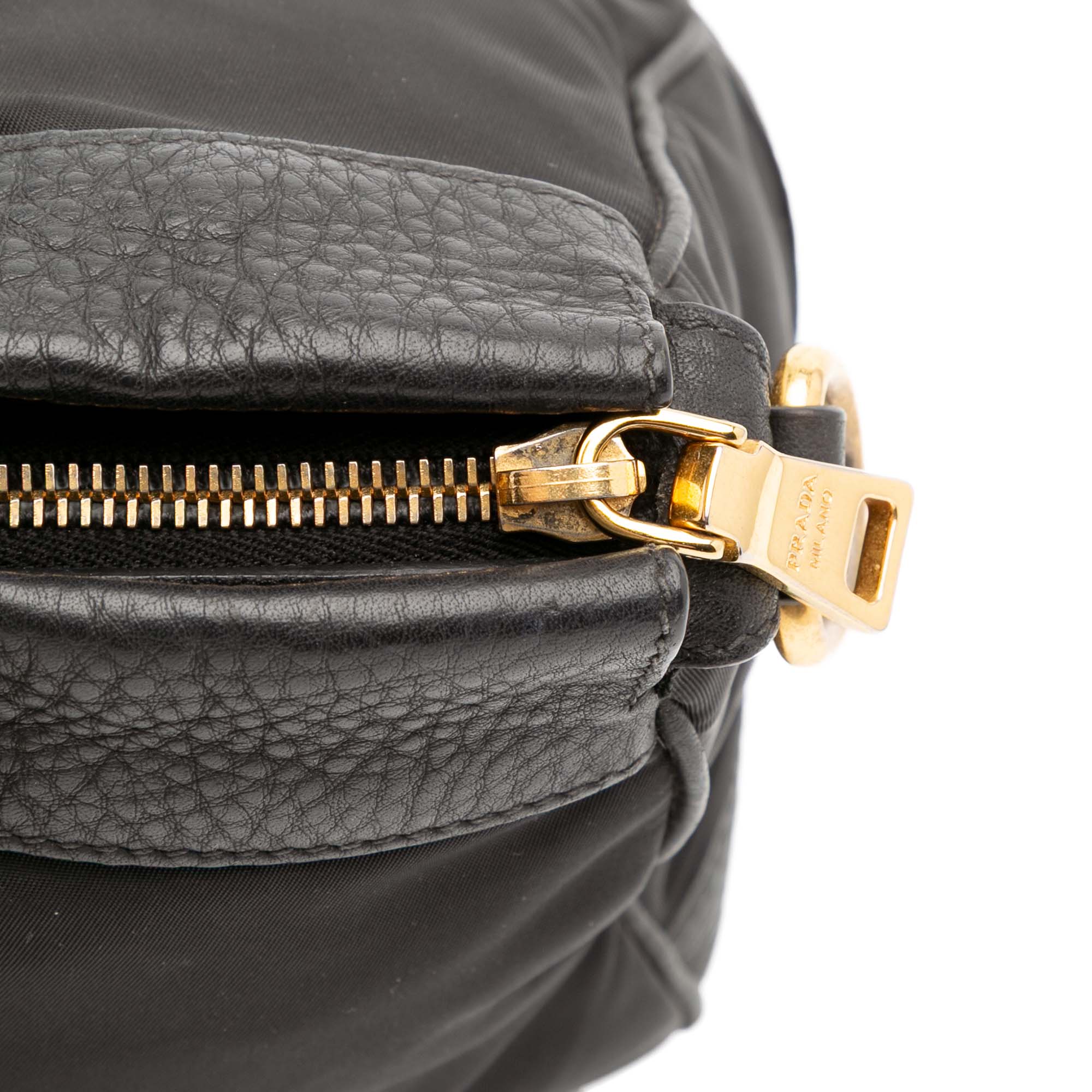Black Prada Vitello Daino Trimmed Tessuto Zip Top Satchel