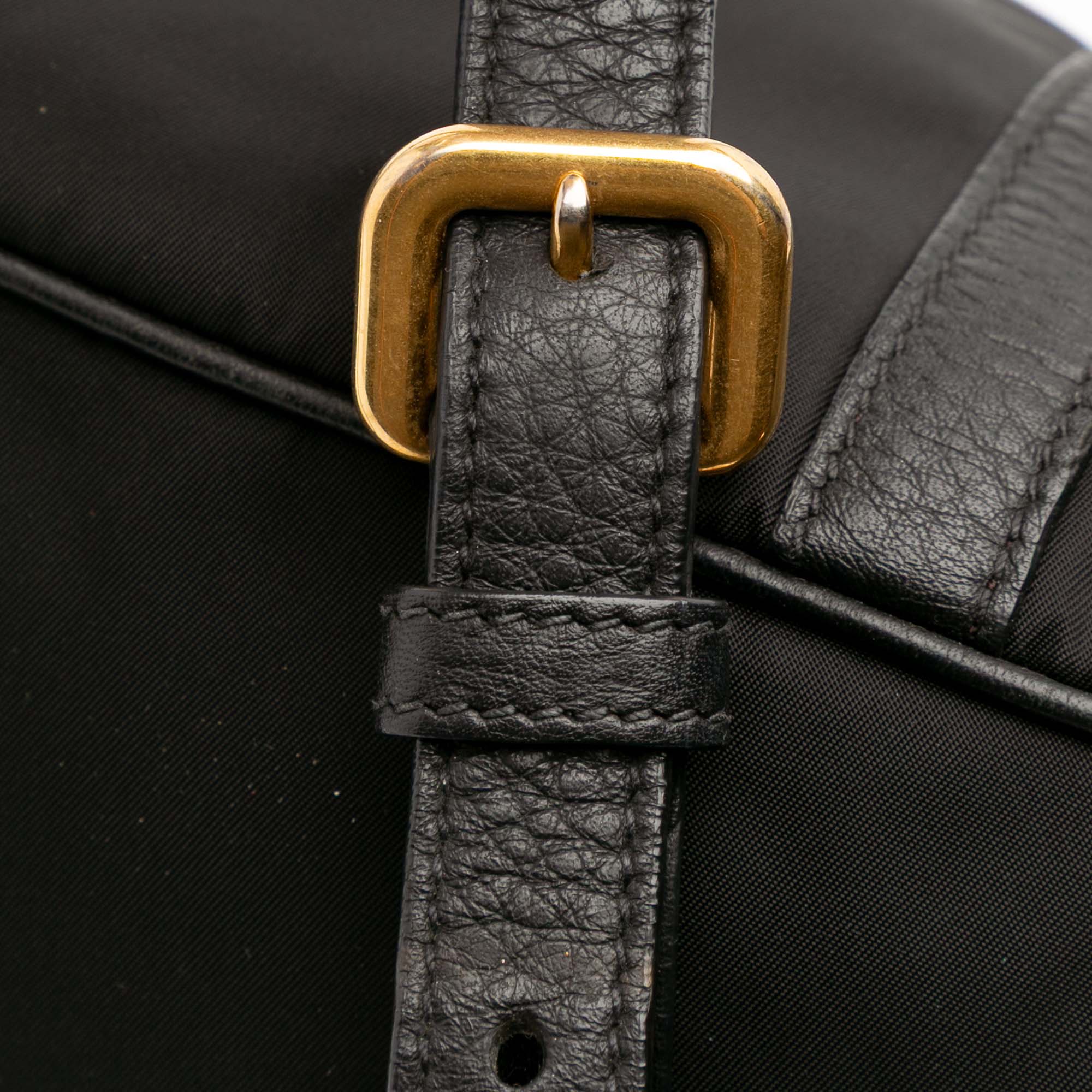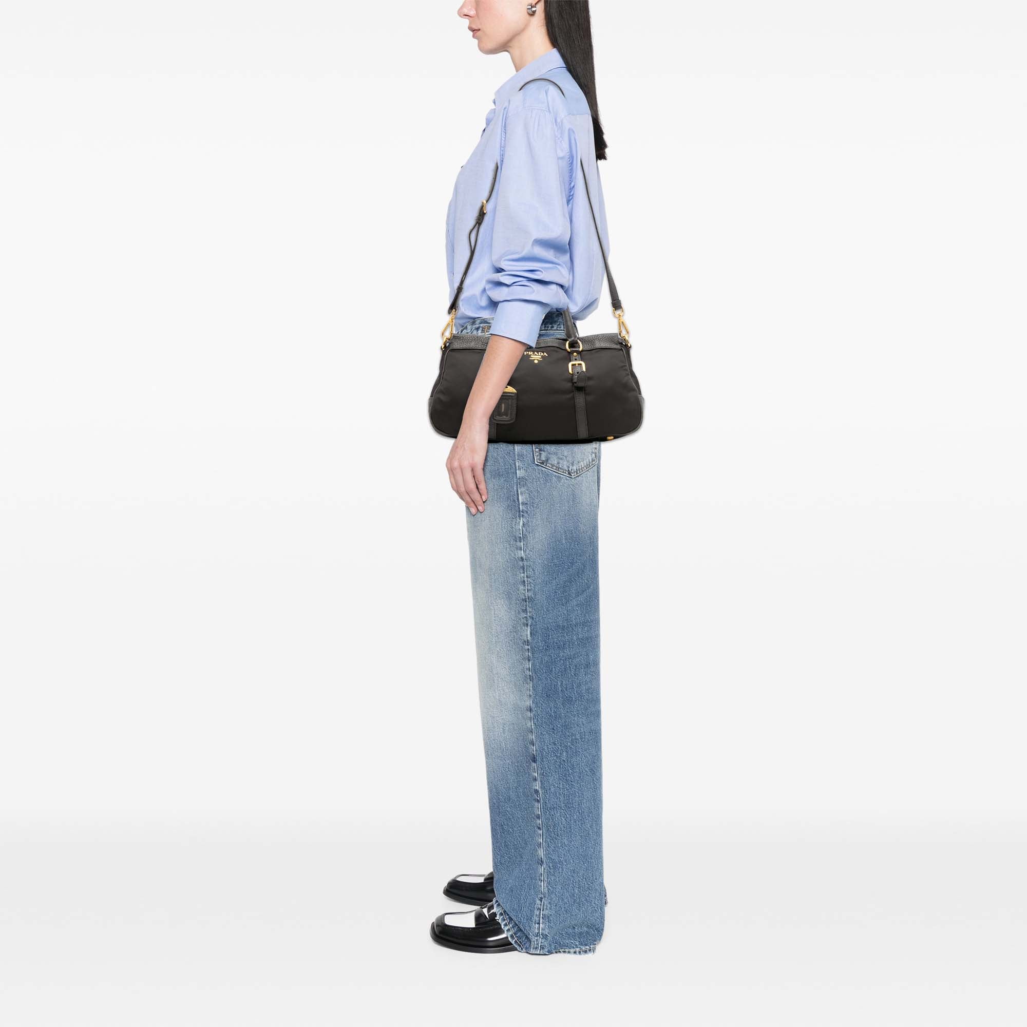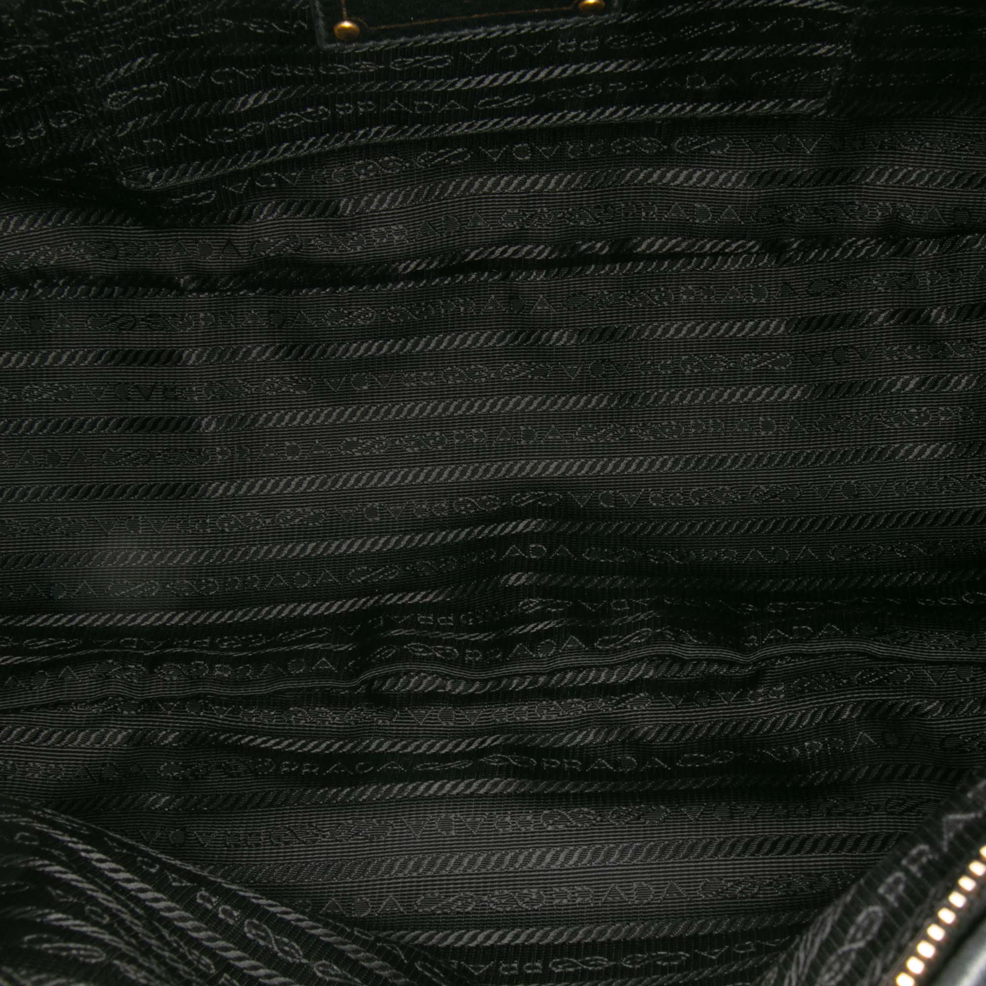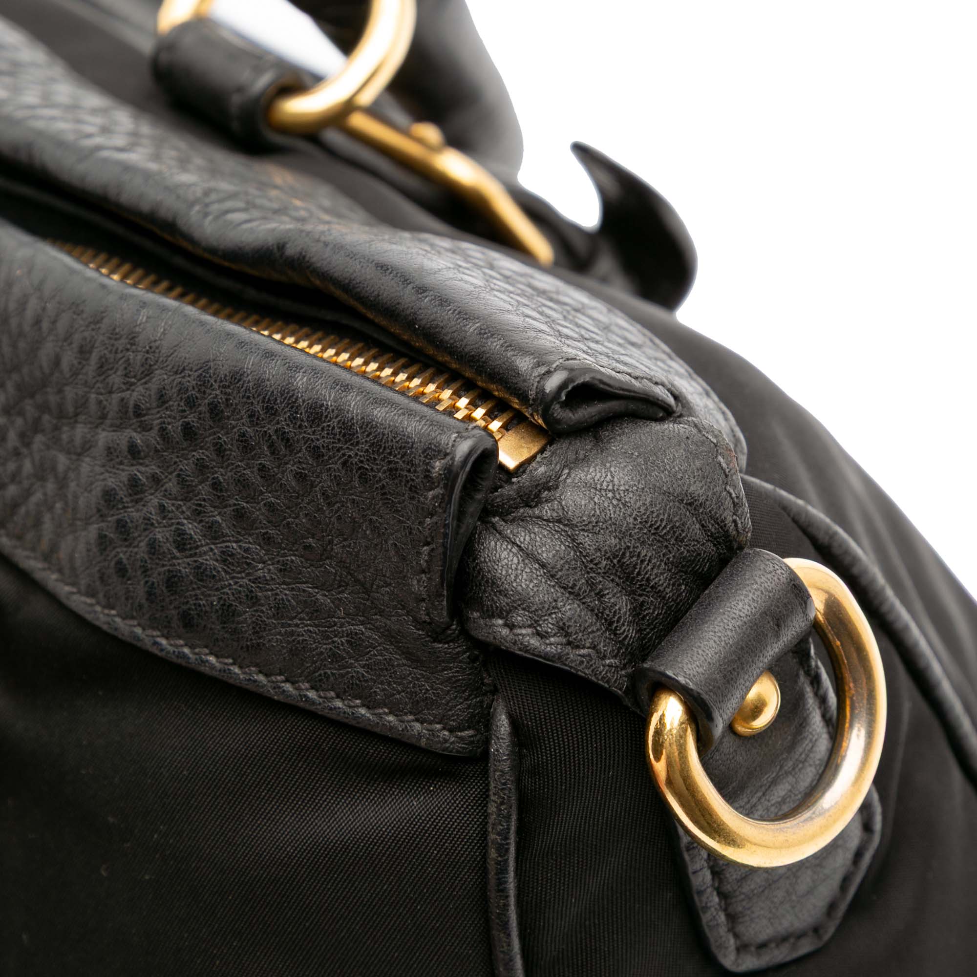 Black Prada Vitello Daino Trimmed Tessuto Zip Top Satchel
