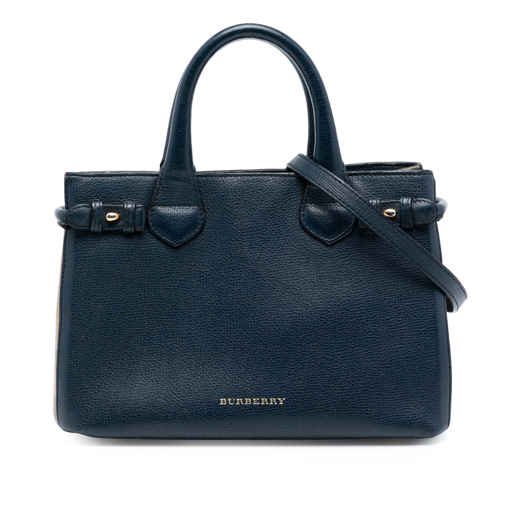 Blue Burberry Small Grainy Calfskin and House Check Banner Satchel