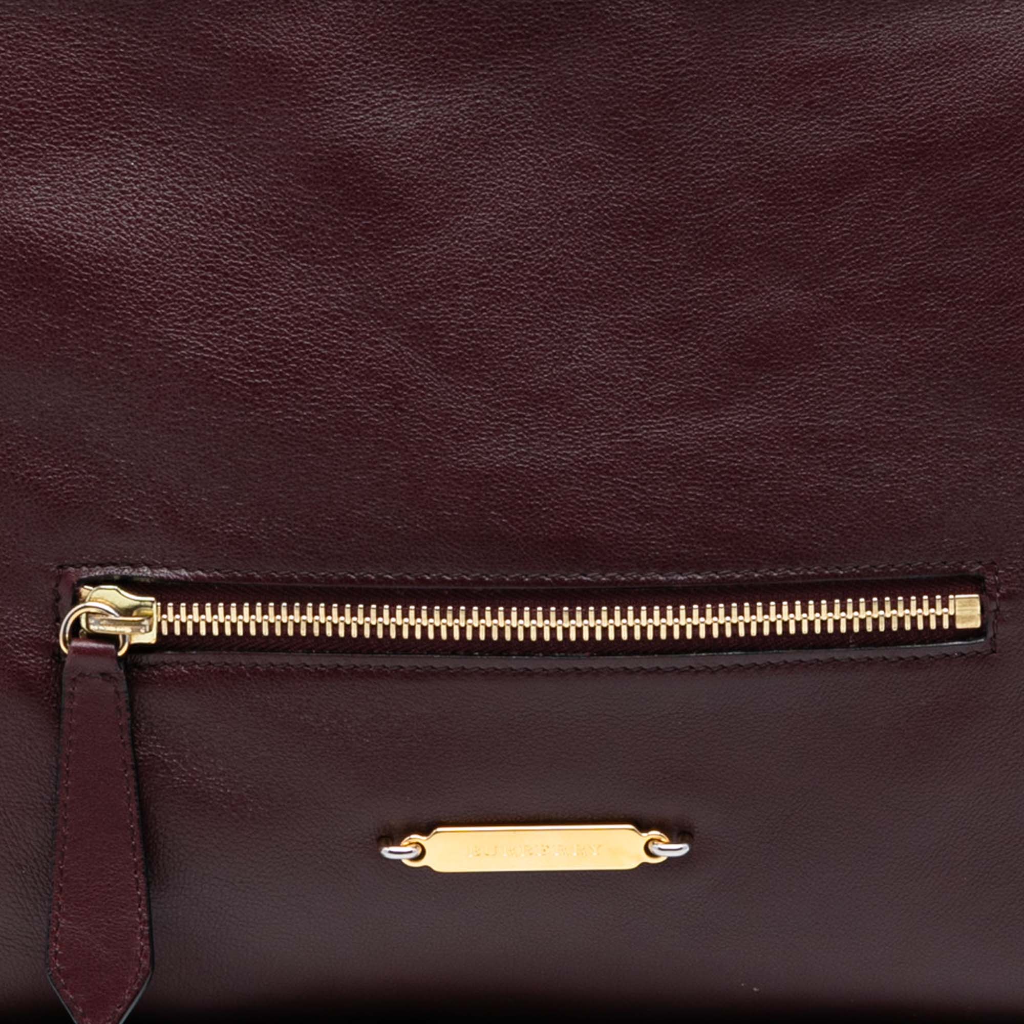 Red Burberry House Check Trimmed Leather Big Crush Convertible Tote Satchel