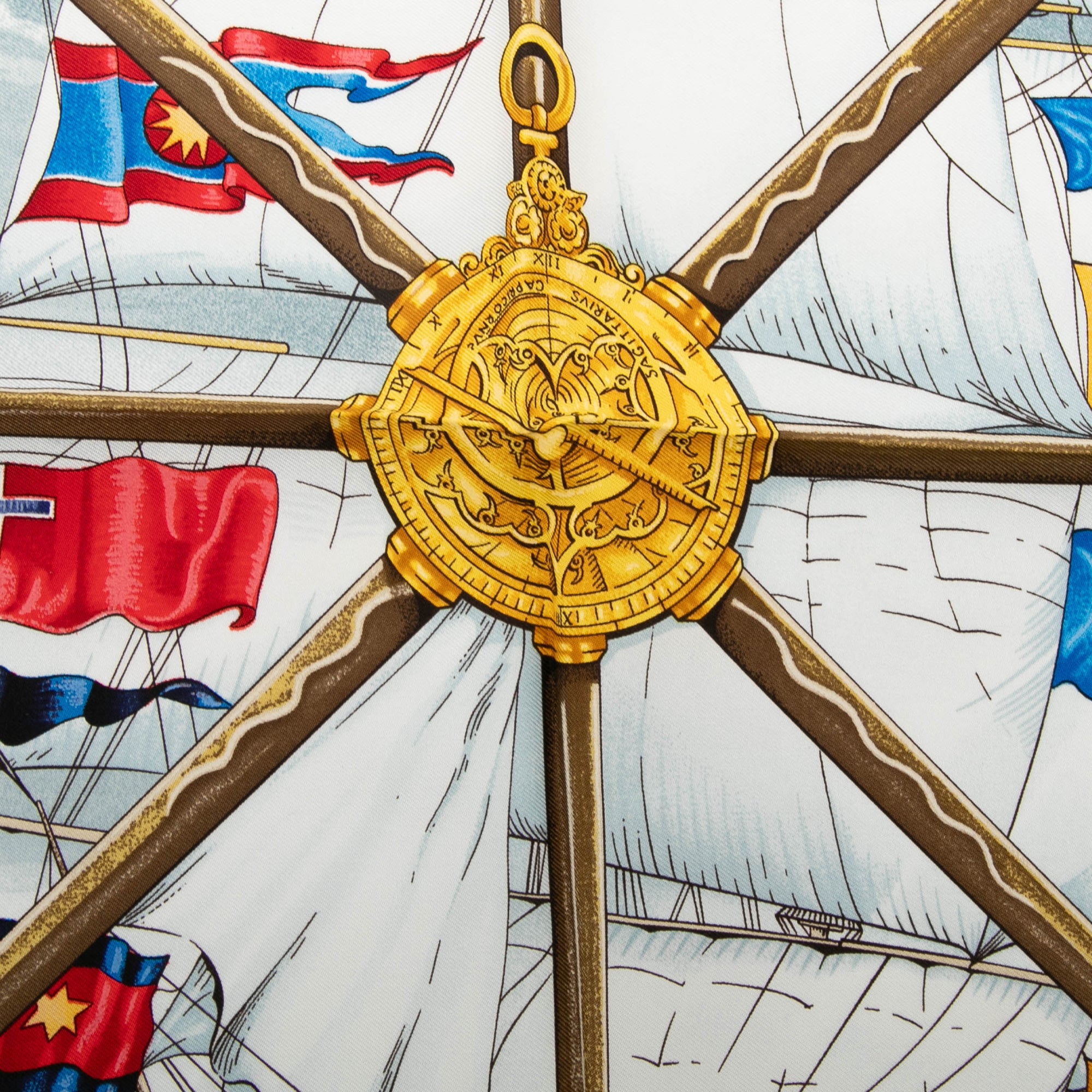 Product Details: White Hermès Vive Le Vent Silk Scarf Scarves. The Vive Le Vent scarf features a print on 100% silk. 34.6" L x 34.4" W x 0" D.