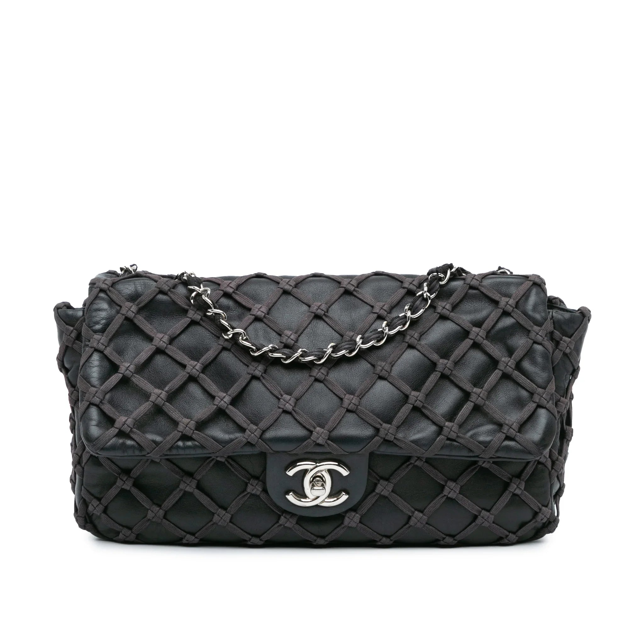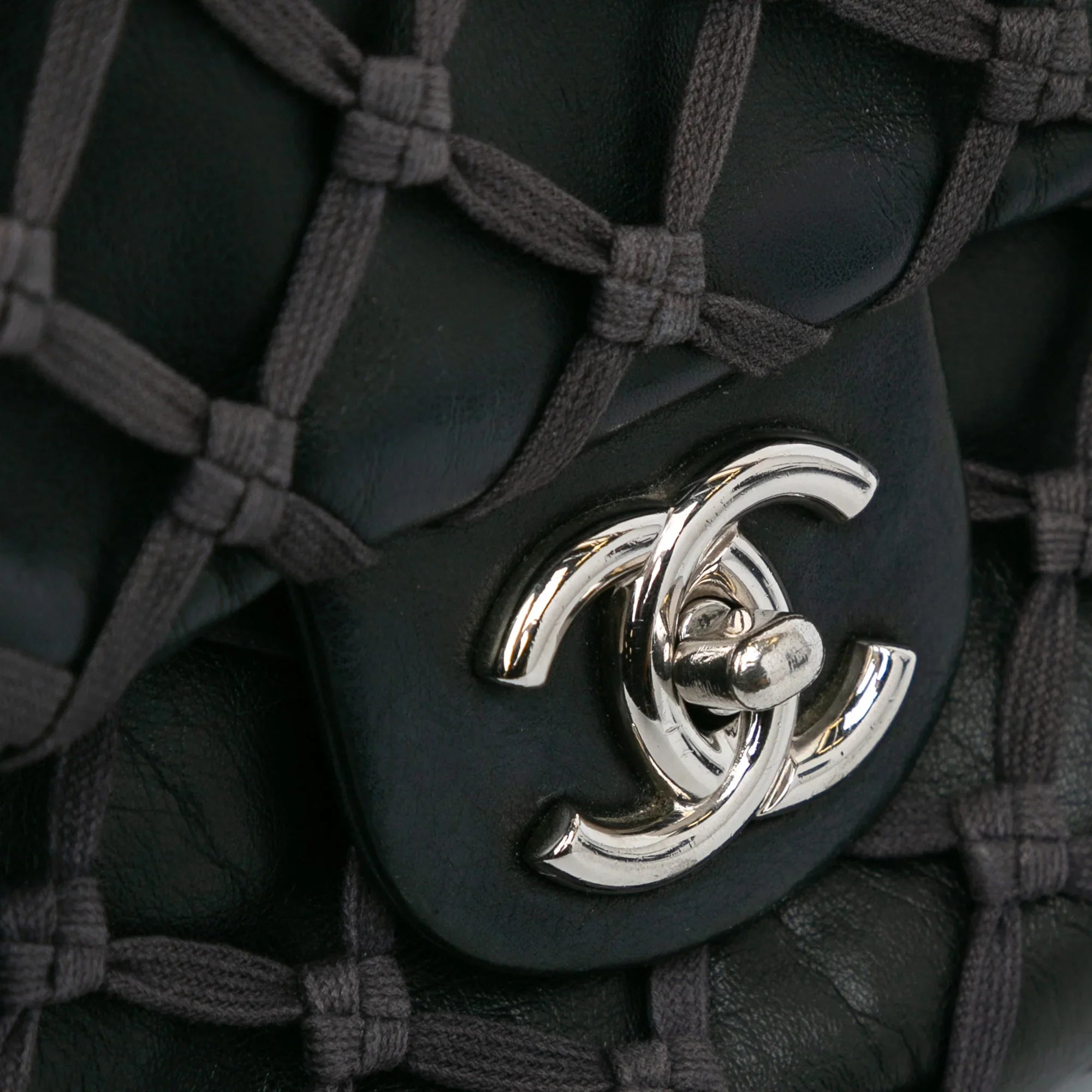 Black Chanel Jumbo Calfskin Canebiers Net Flap Shoulder Bag