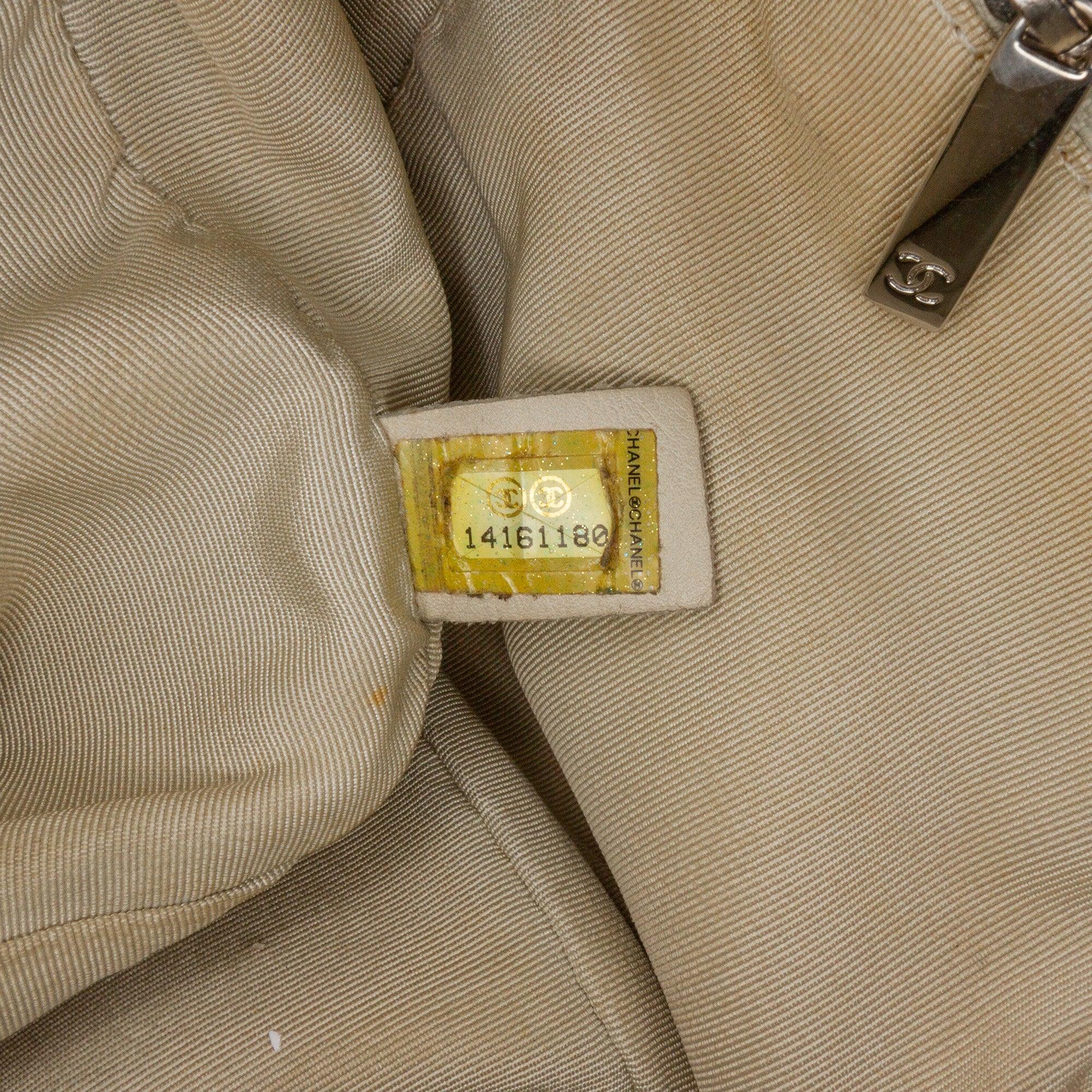 Product Details: Black Chanel Jumbo Calfskin Canebiers Net Flap Shoulder Bag. This shoulder bag features a calf leather body with fabric netting details, fabric woven chain link straps, a flap with CC turn lock closure, and an interior zip pocket. 8.3" L x 11.8" W x 3.9" D, 10.2" drop. Serial number 14161180.