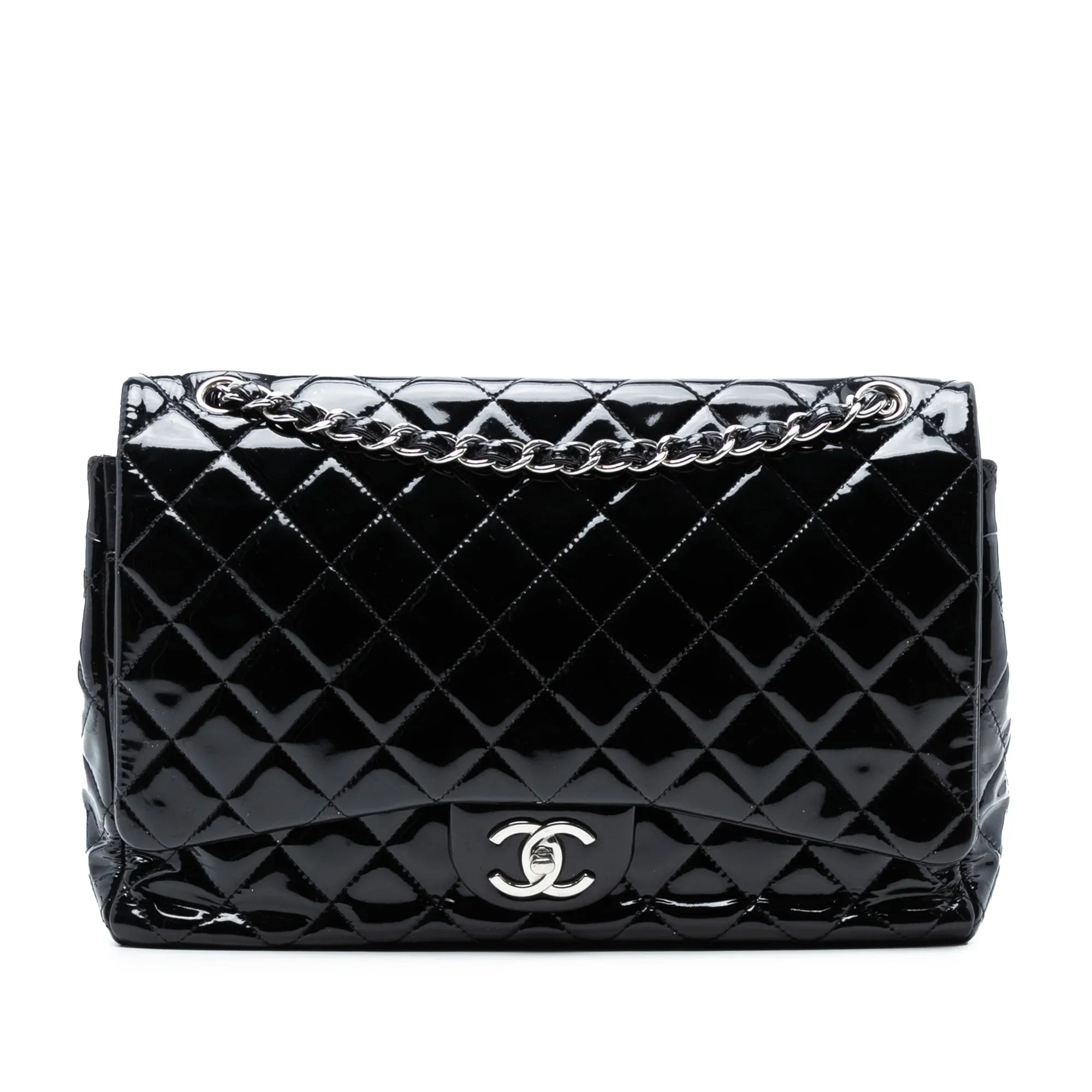 Black Chanel Maxi Classic Patent Double Flap Shoulder Bag