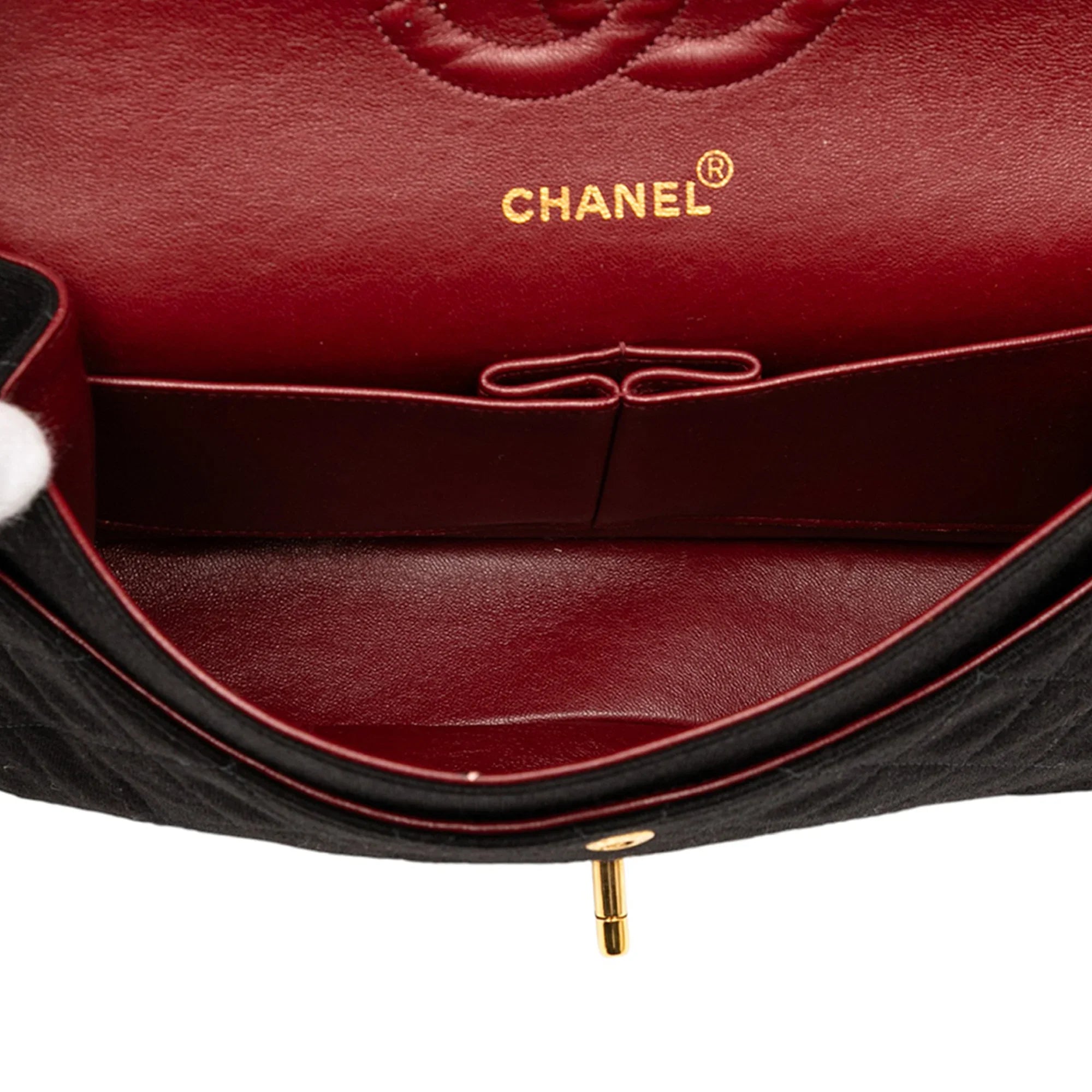 Please note this is a pre-owned item that may display signs of wear consistent with the condition listed above and shown in photos. Designer Revival guarantees this is an authentic Black Chanel Medium Classic Jersey Double Flap Shoulder Bag or 100% of your money back. Learn more about our authentication process.
