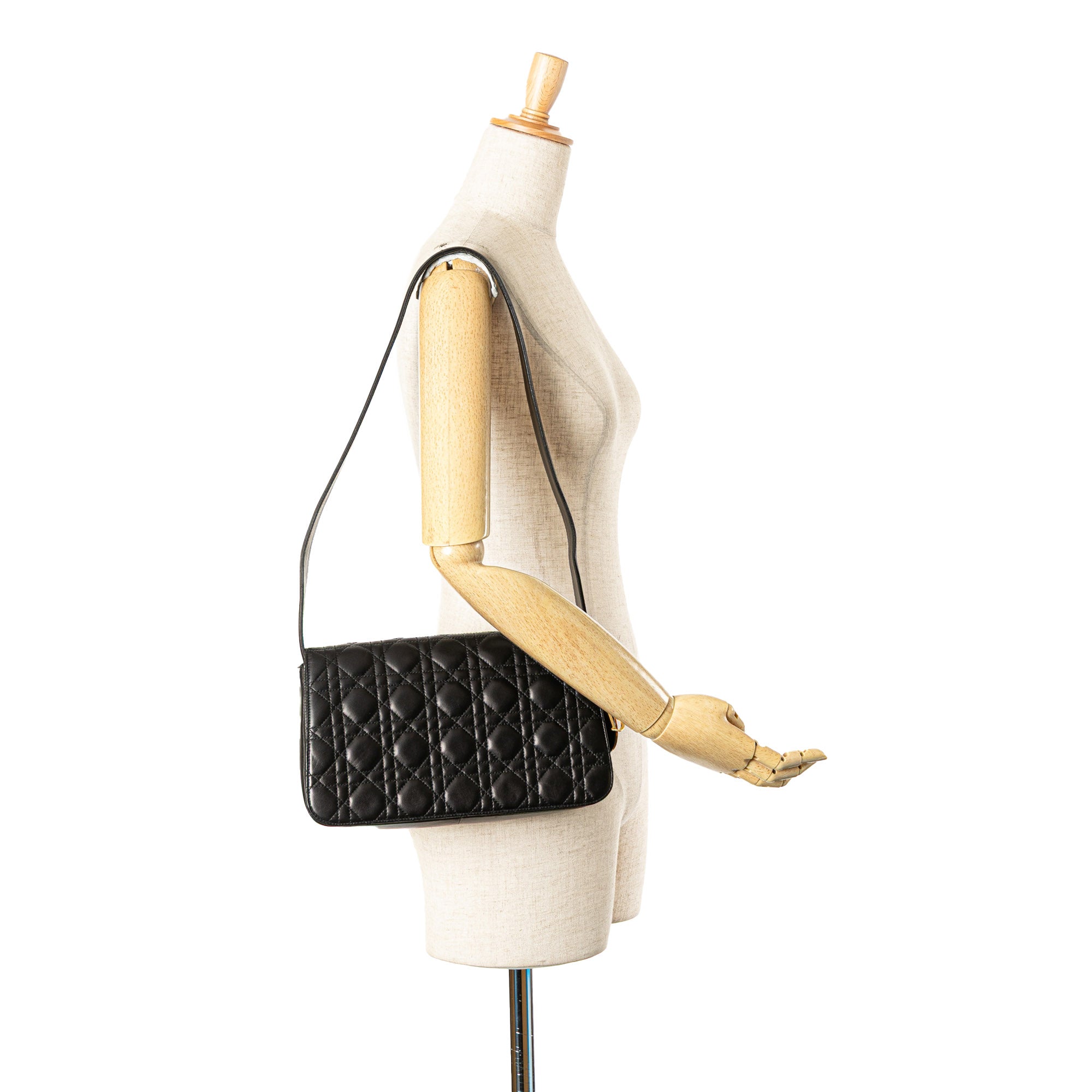 Black Dior Lambskin Cannage Shoulder Bag