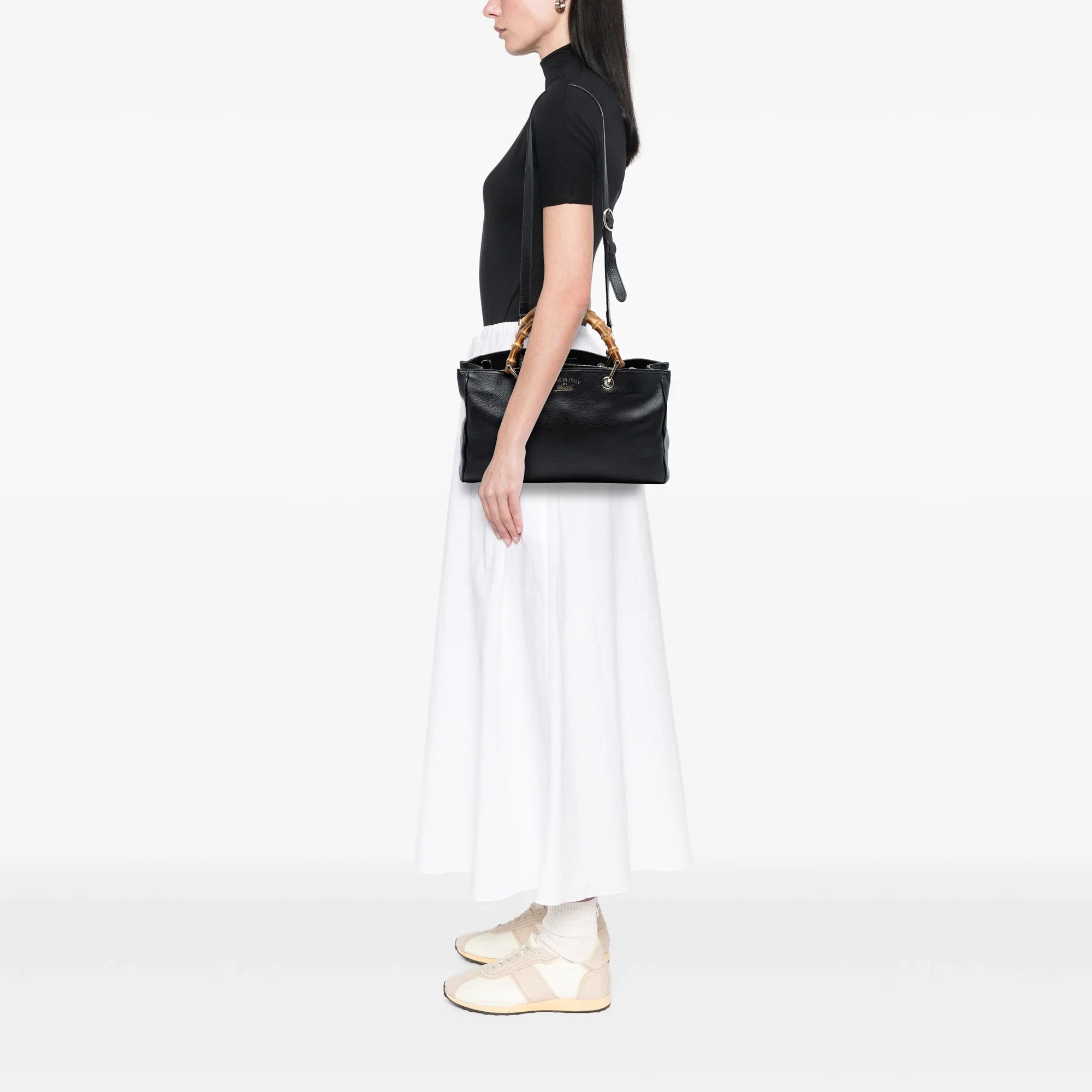 Black Gucci Medium Calfskin Bamboo Shopper Satchel