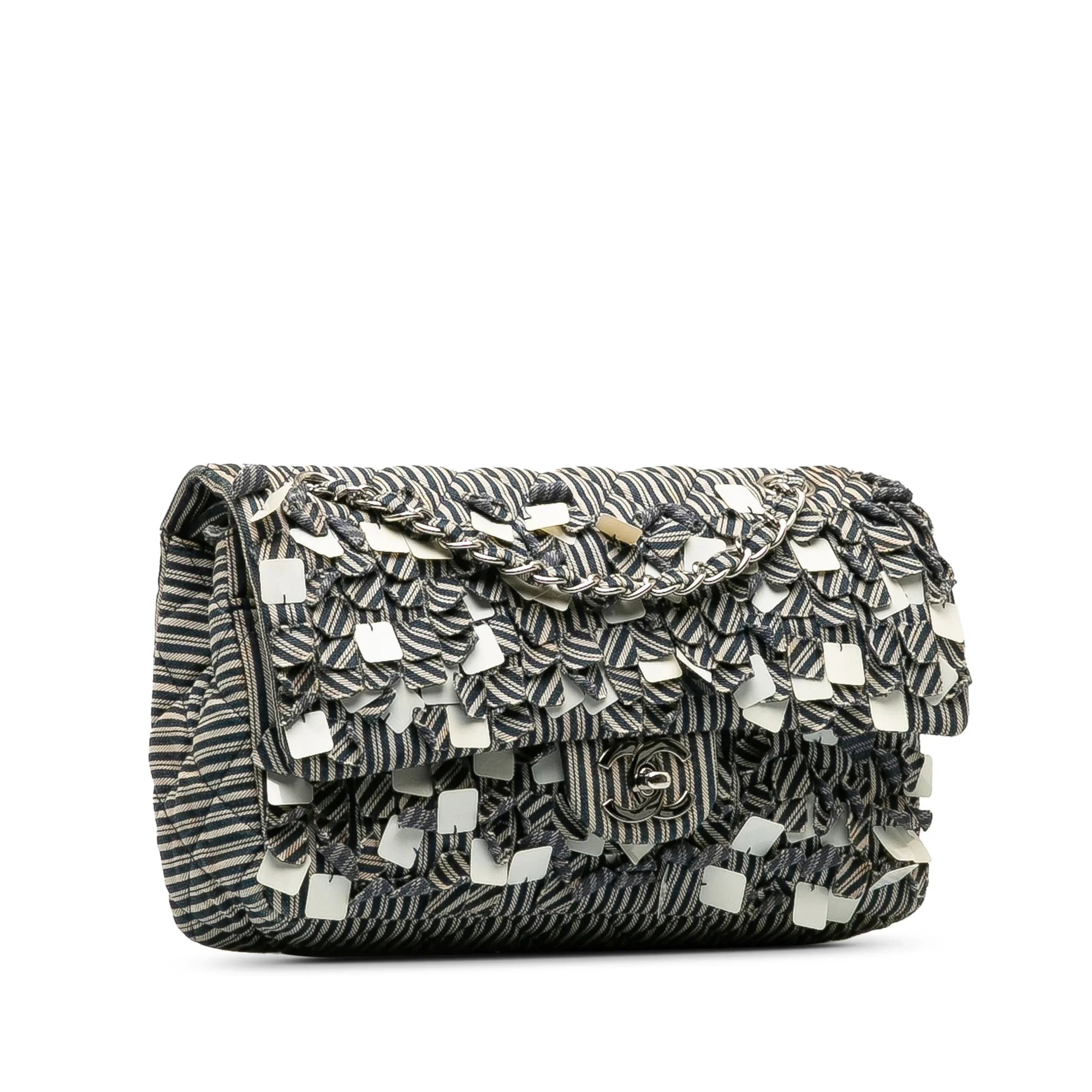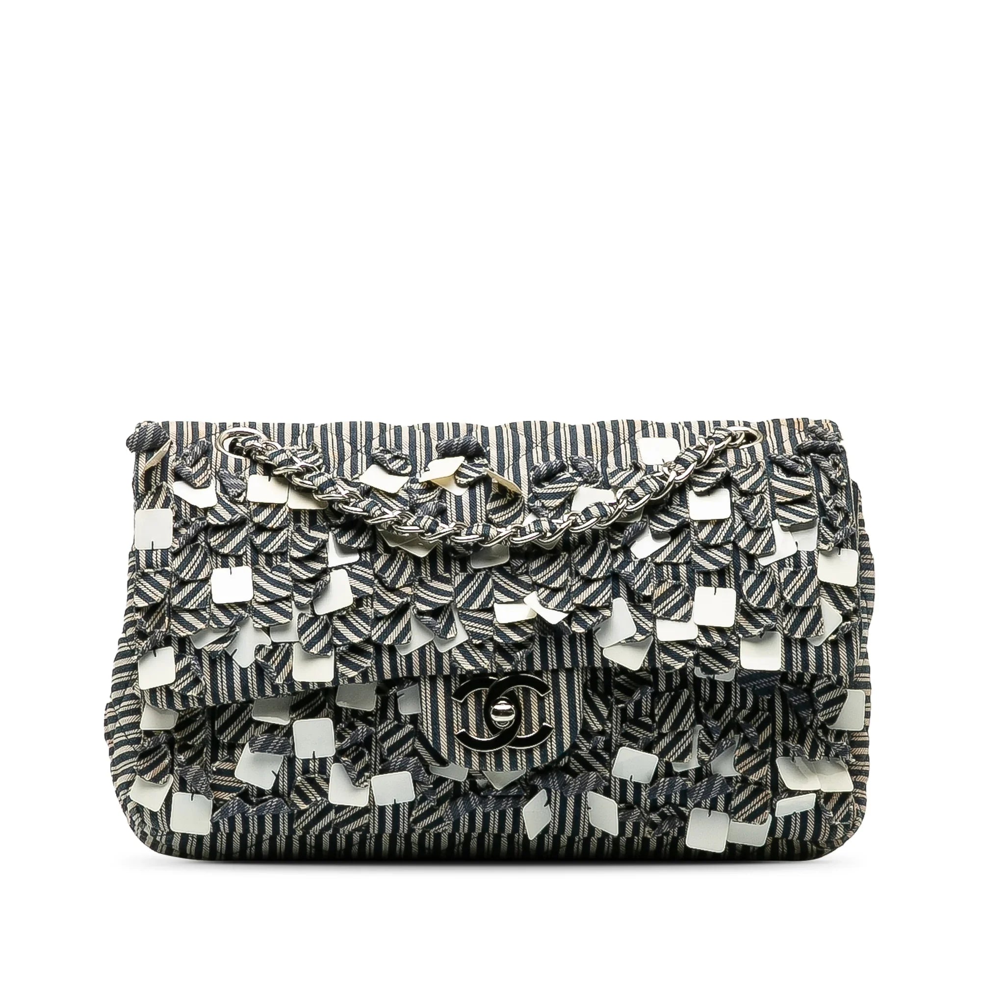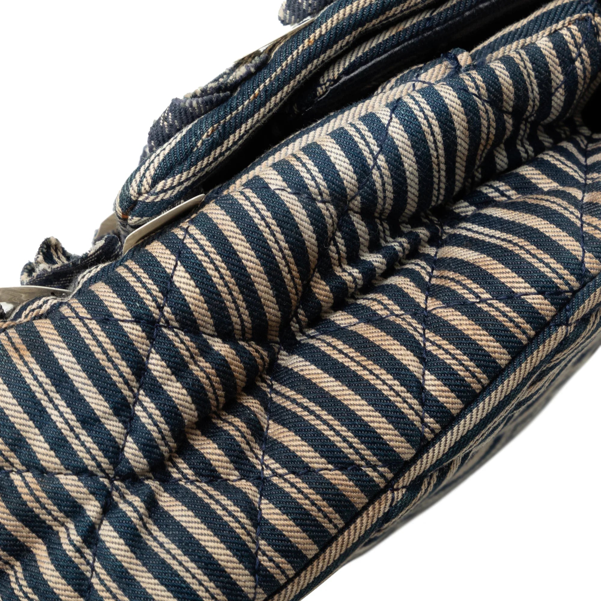 Please note this is a pre-owned item that may display signs of wear consistent with the condition listed above and shown in photos. Designer Revival guarantees this is an authentic Blue Chanel Medium Cotton Striped Double Flap Shoulder Bag or 100% of your money back. Learn more about our authentication process.