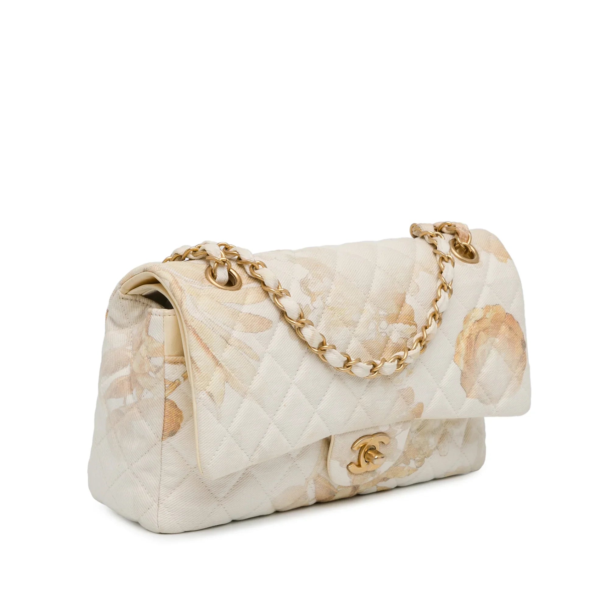 Brown Chanel Medium Classic Printed Denim Floral Double Flap Shoulder Bag