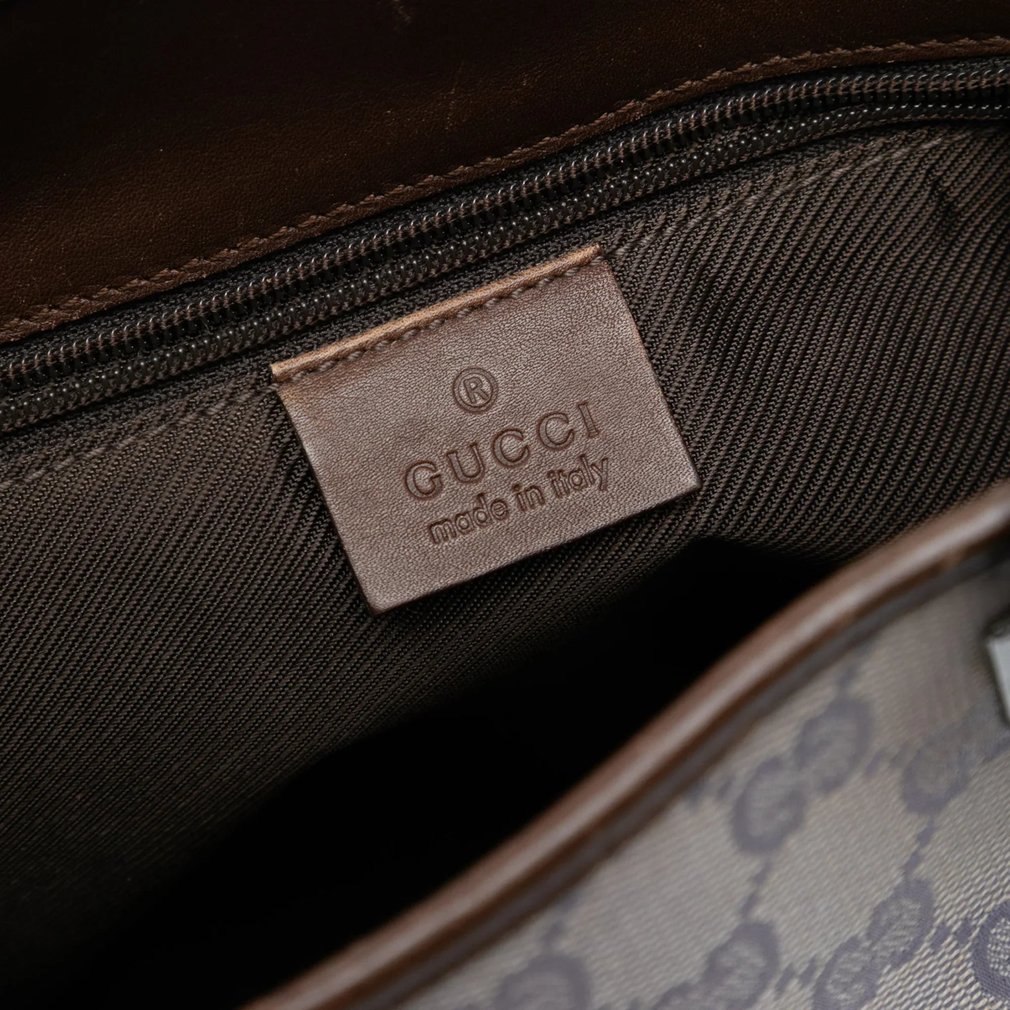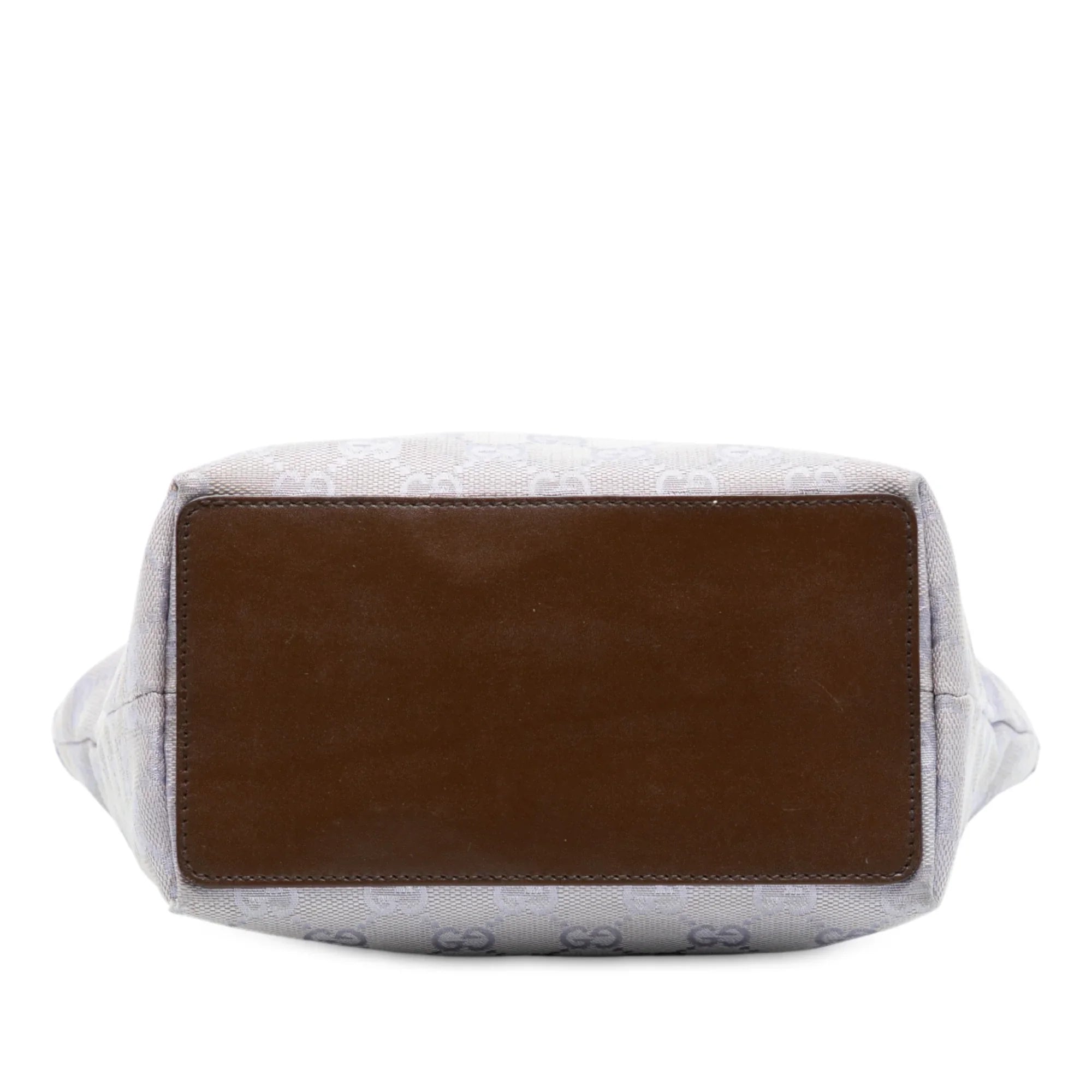 Product Details: Lavender Purple Gucci GG Canvas Shoulder Bag. This shoulder bag features a canvas body with leather trim, flat leather straps, an open top, and an interior zip pocket. 9.4" L x 6.7" W x 3.5" D. Serial number 31244 002214.