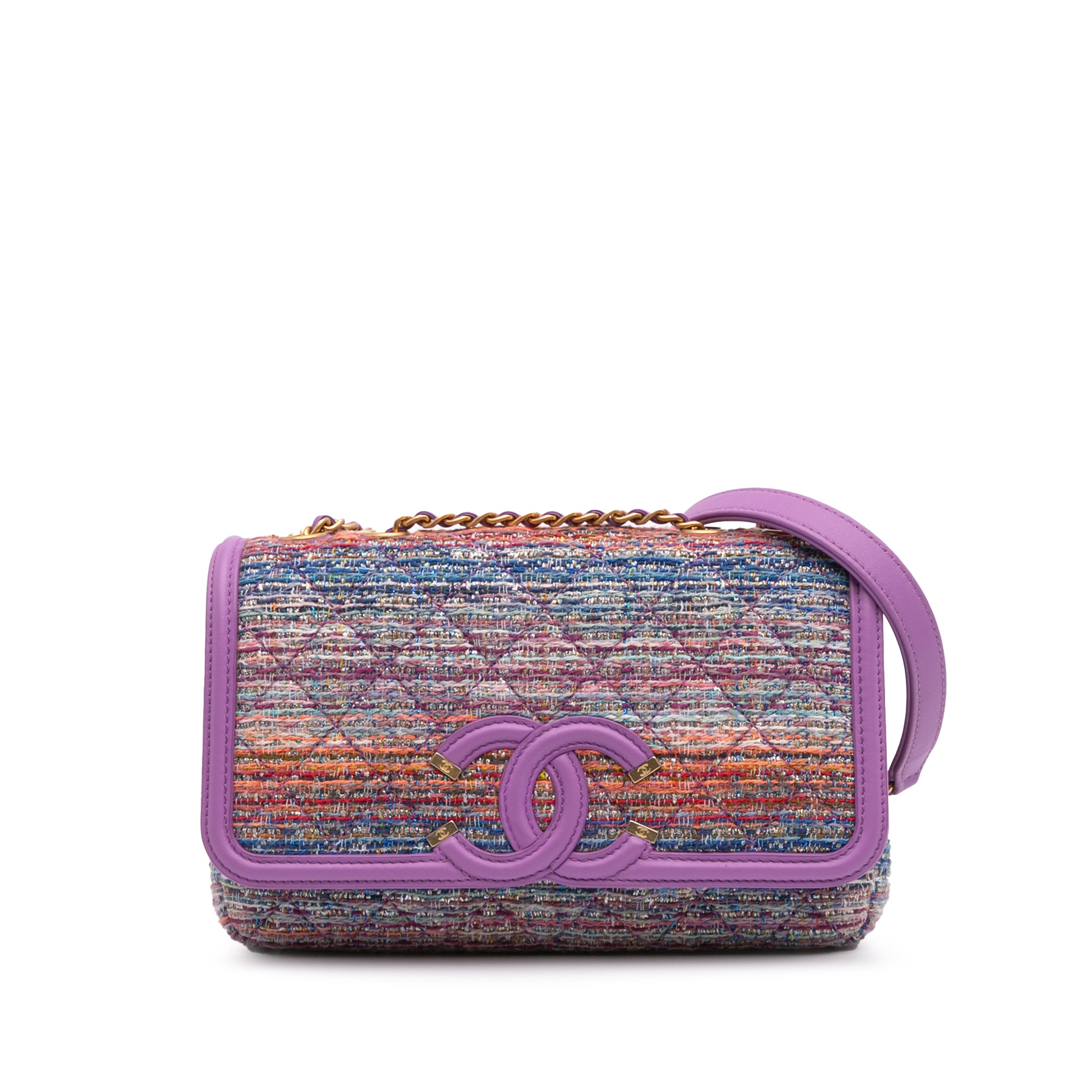 Purple Chanel Medium Tweed CC Filigree Flap Shoulder Bag