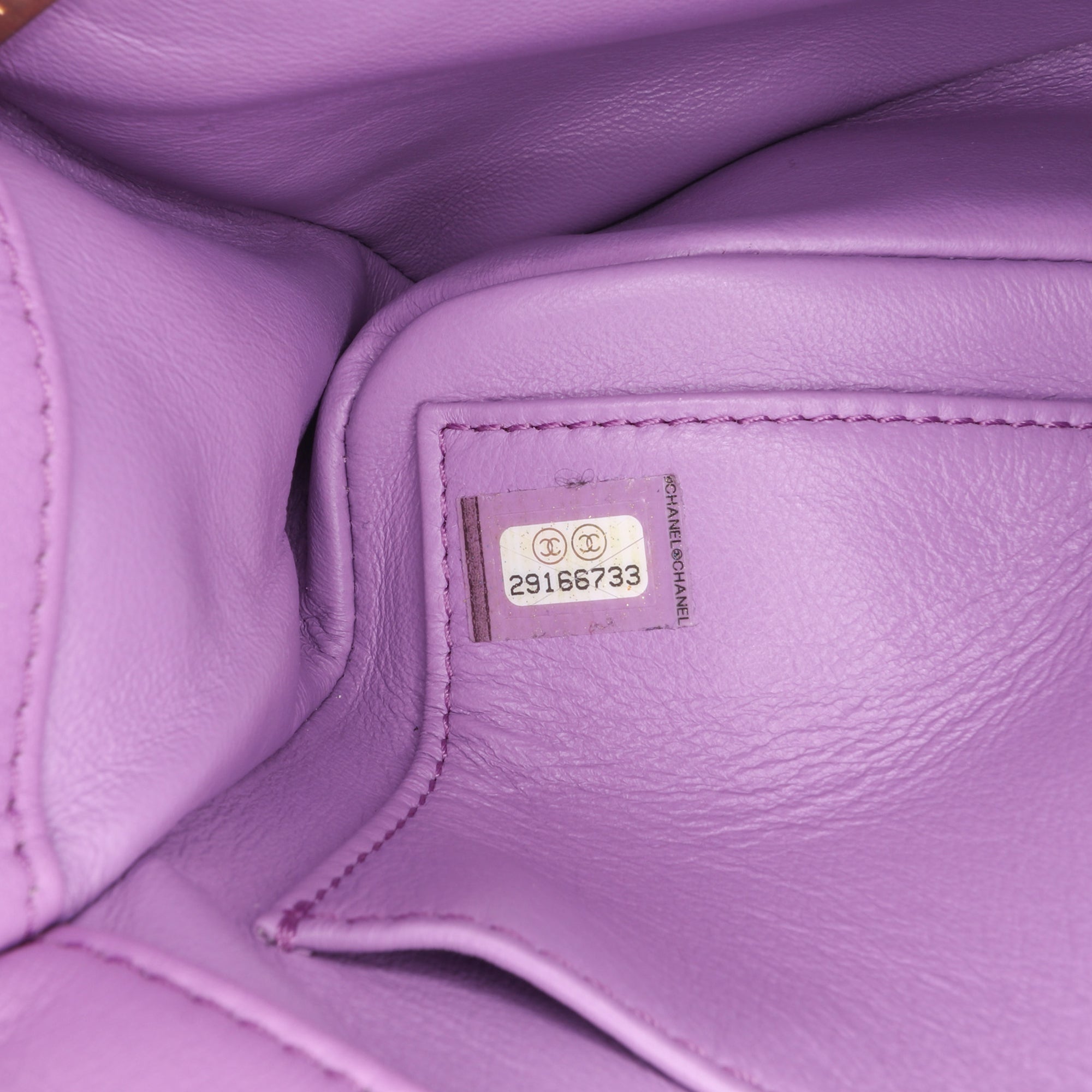 Please note this is a pre-owned item that may display signs of wear consistent with the condition listed above and shown in photos. Designer Revival guarantees this is an authentic Purple Chanel Medium Tweed CC Filigree Flap Shoulder Bag or 100% of your money back. Learn more about our authentication process.