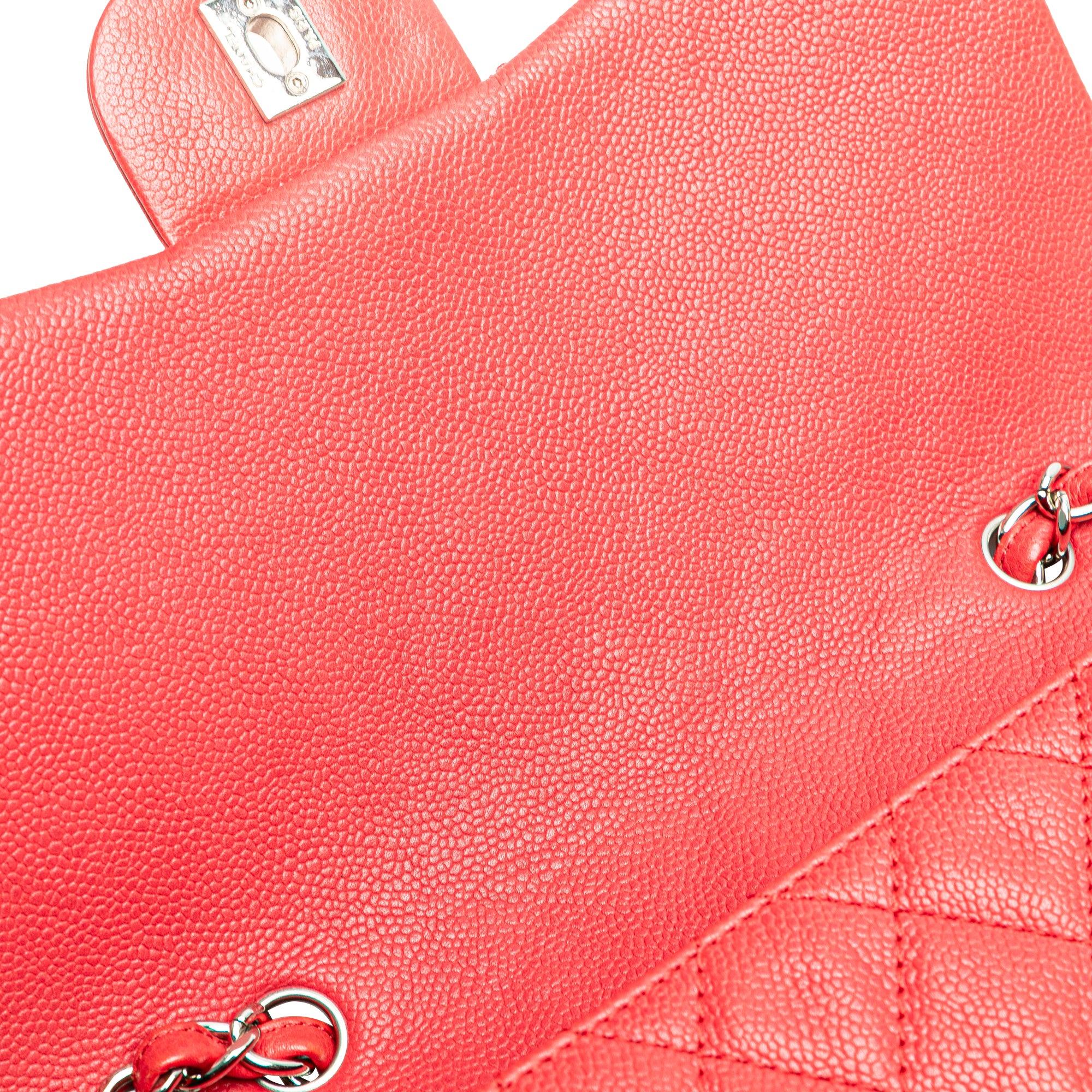 Please note this is a pre-owned item that may display signs of wear consistent with the condition listed above and shown in photos. Designer Revival guarantees this is an authentic Red Chanel Jumbo Classic Caviar Single Flap Shoulder Bag or 100% of your money back. Learn more about our authentication process.