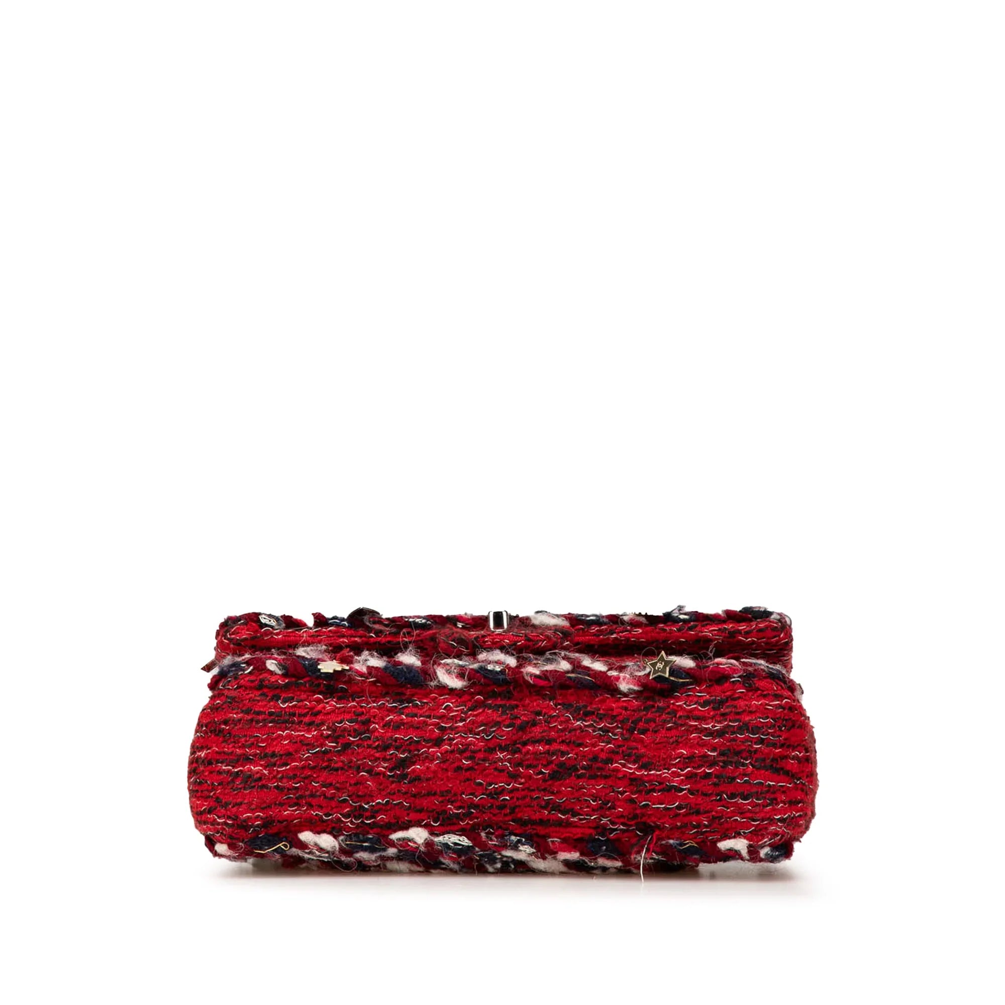 Red Chanel Medium Tweed Braided Charms Double Flap Shoulder Bag