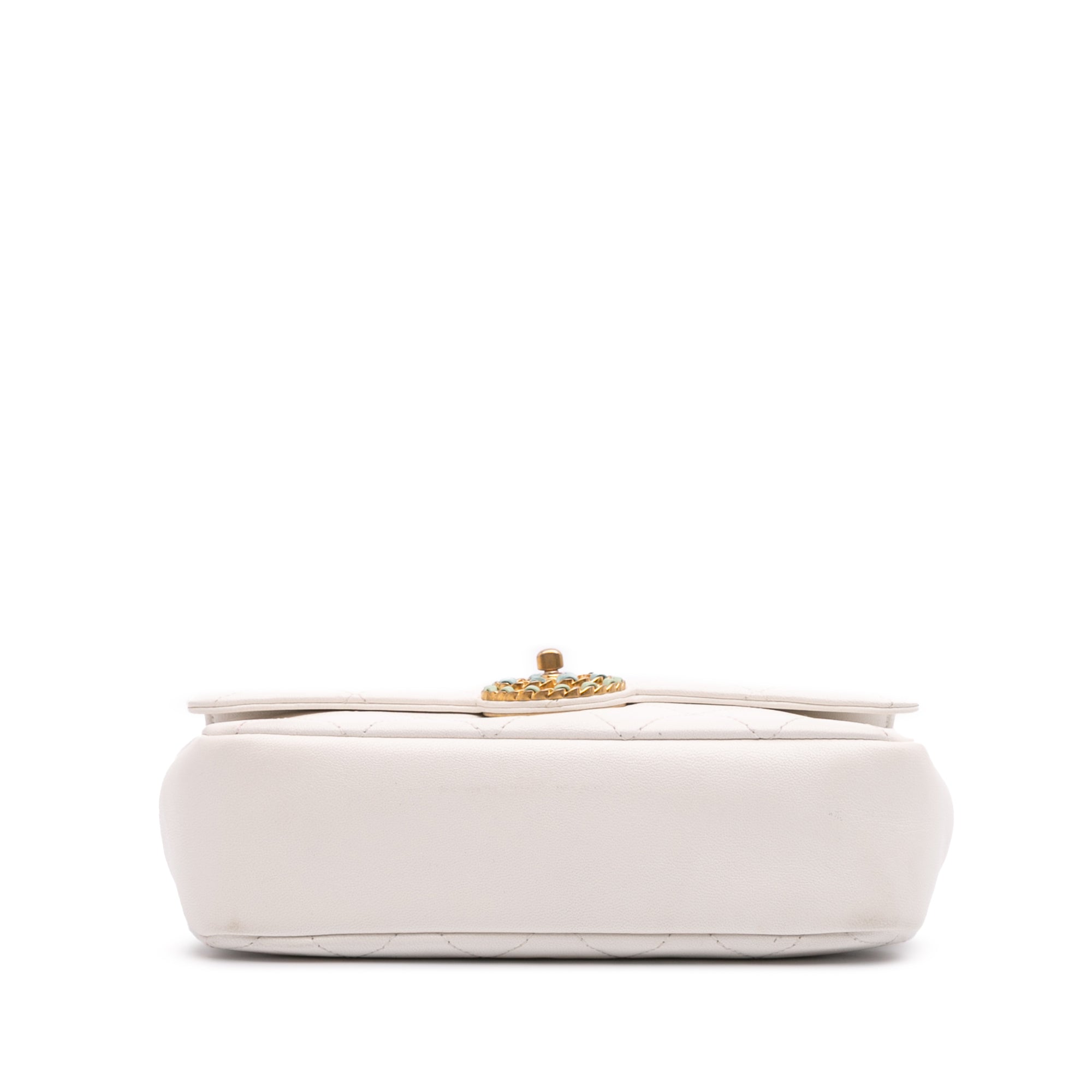 White Chanel CC Quilted Calfskin Single Flap Shoulder Bag - Designer Revival White Chanel CC Quilted Calfskin Single Flap Shoulder Bag - Designer Revival