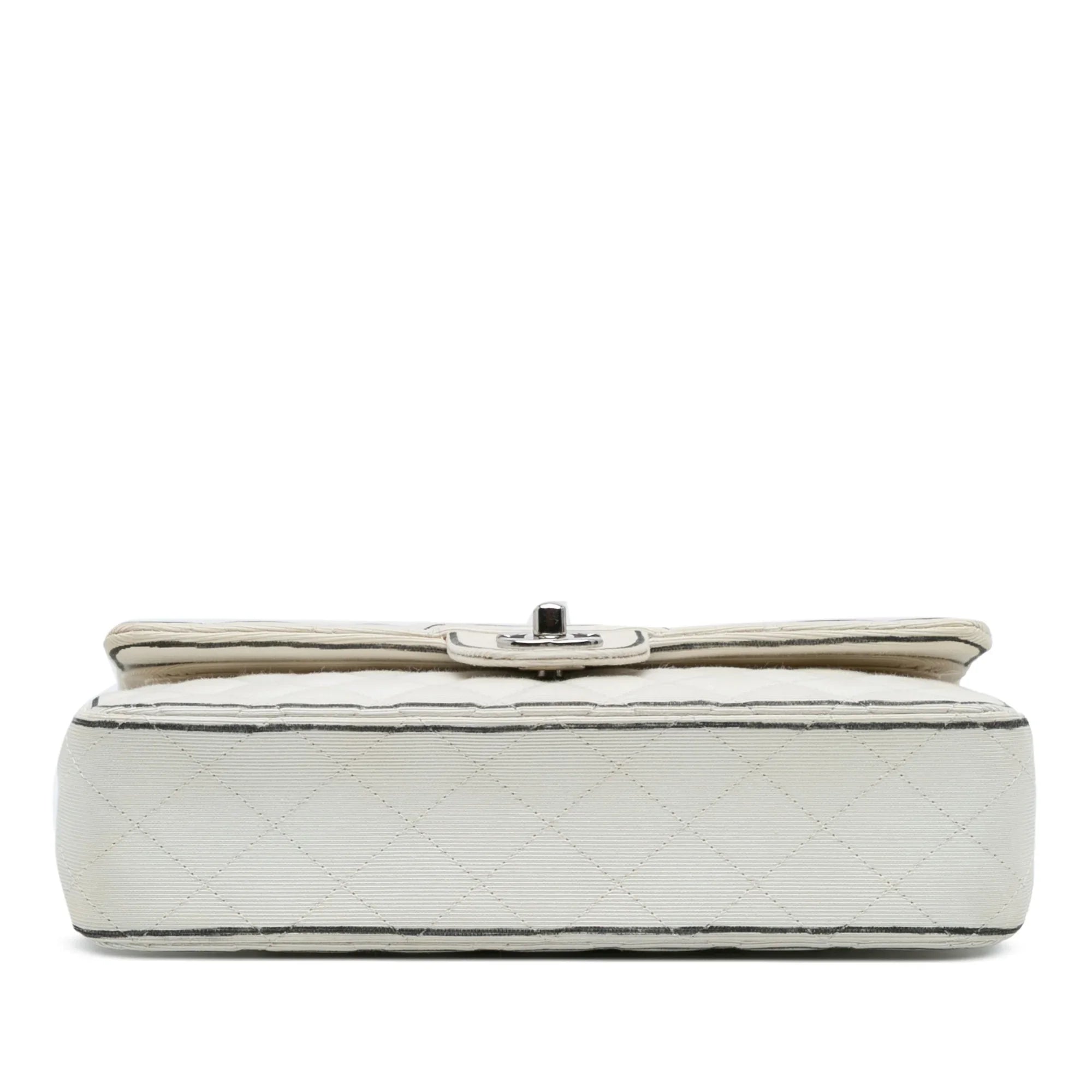 White Chanel Medium Classic Printed Grosgrain Double Flap Shoulder Bag