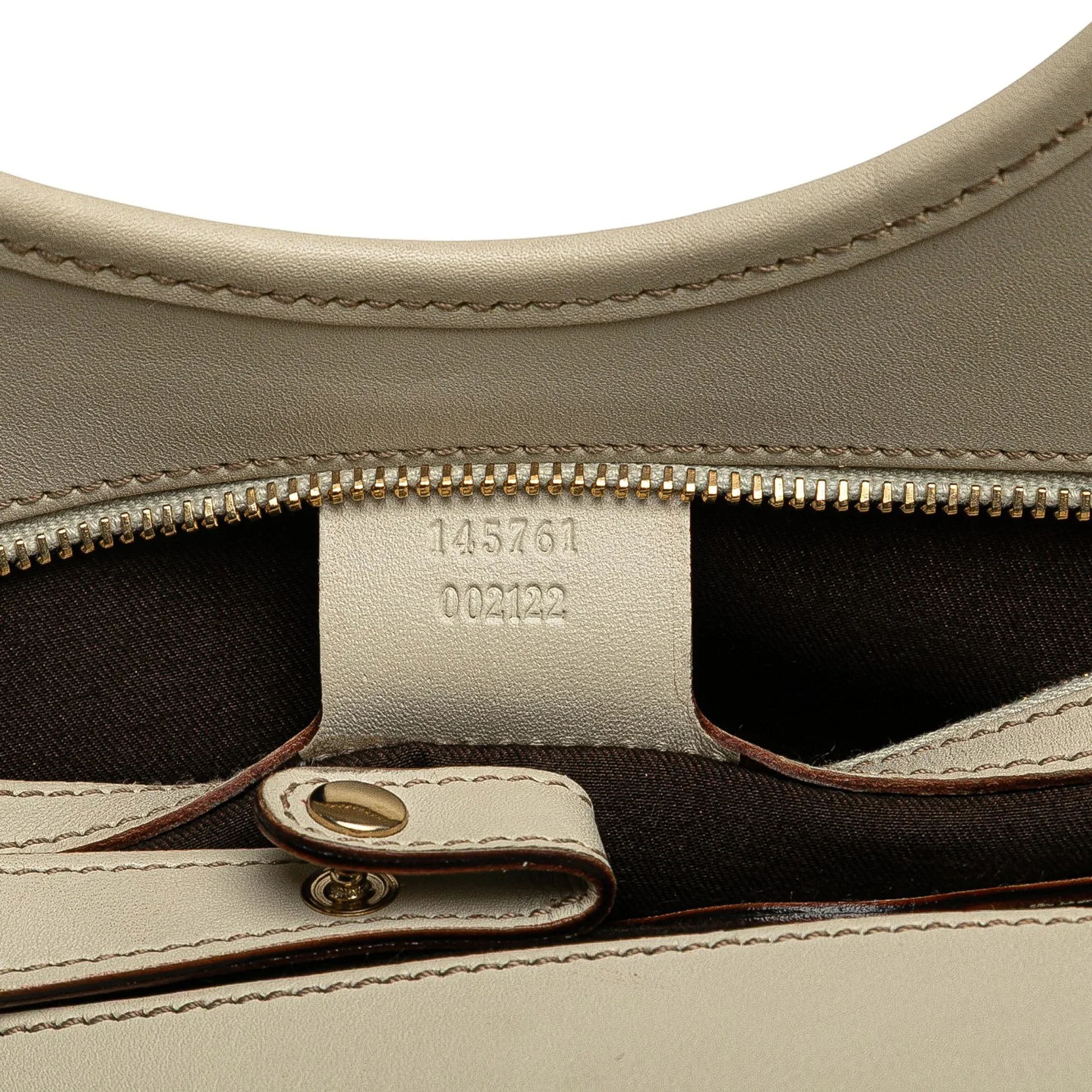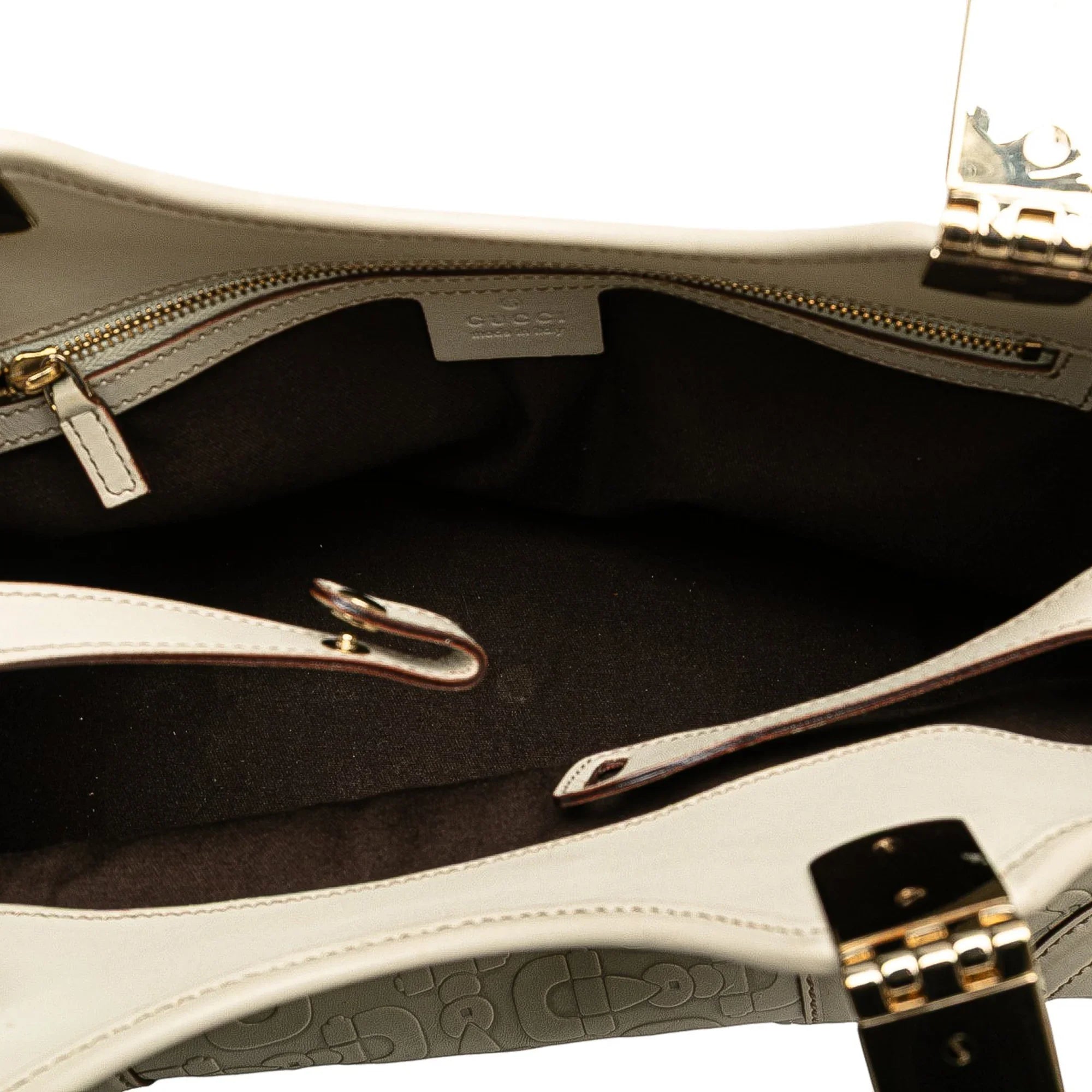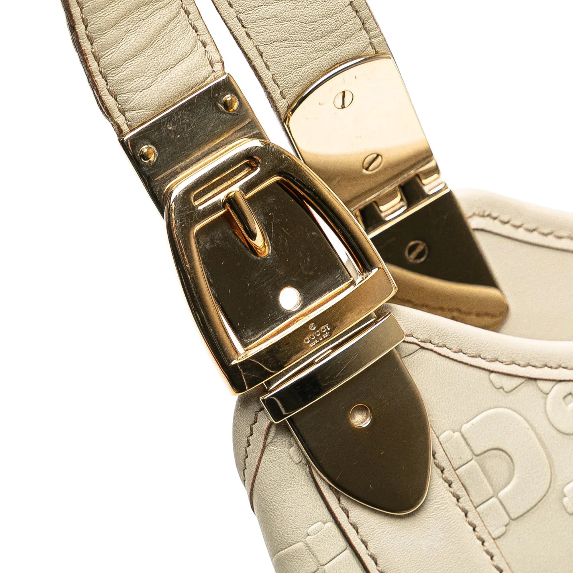 White Gucci Horsebit Embossed Leather Shoulder Bag