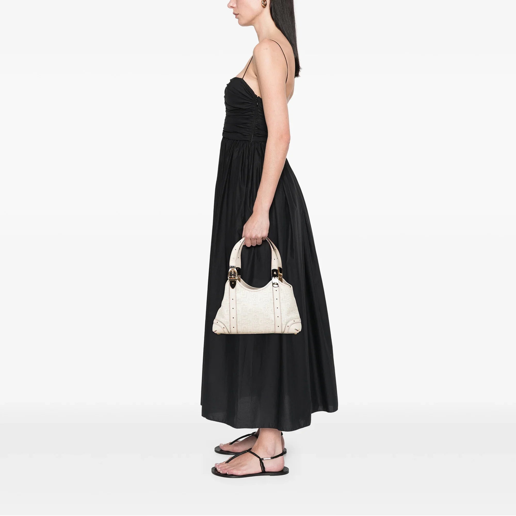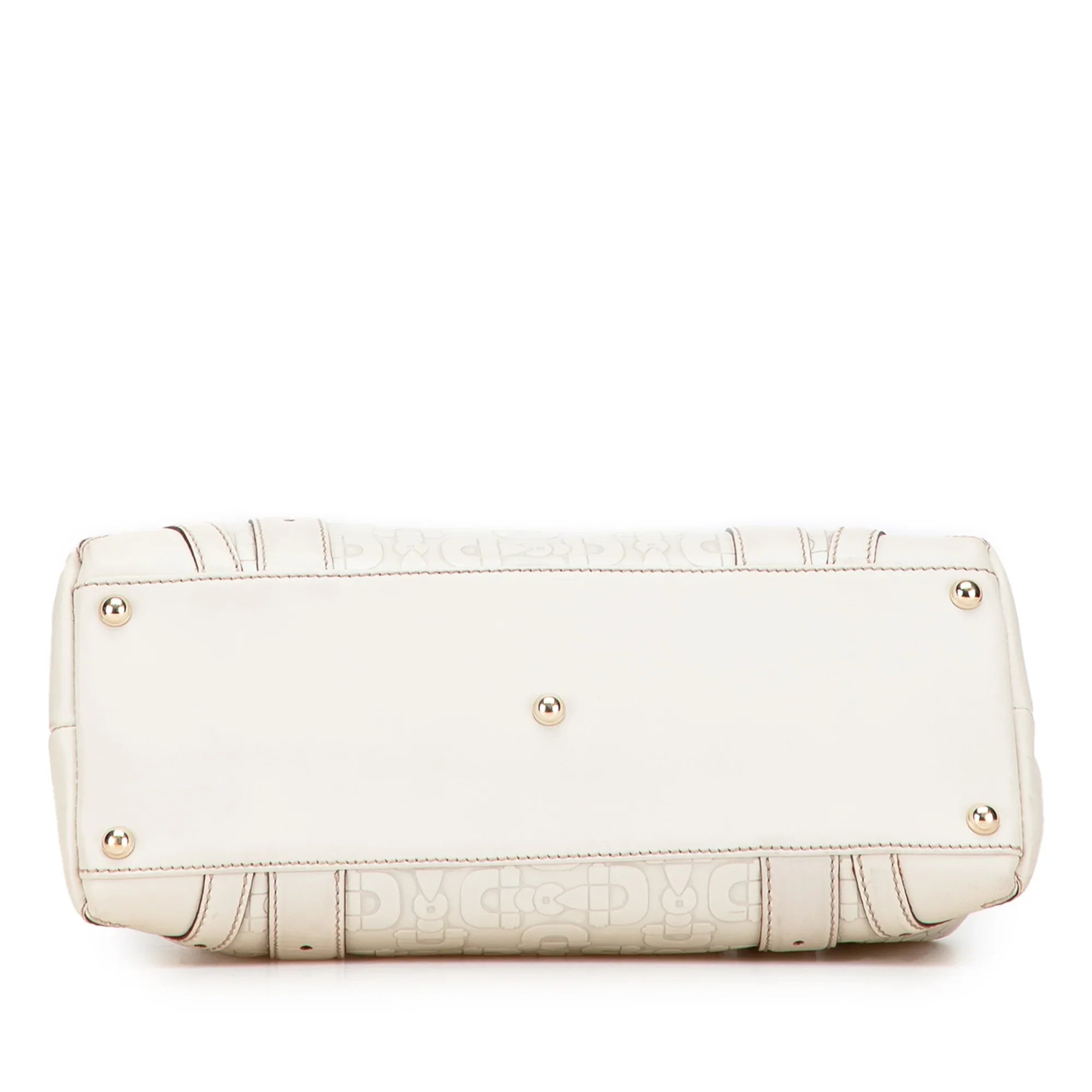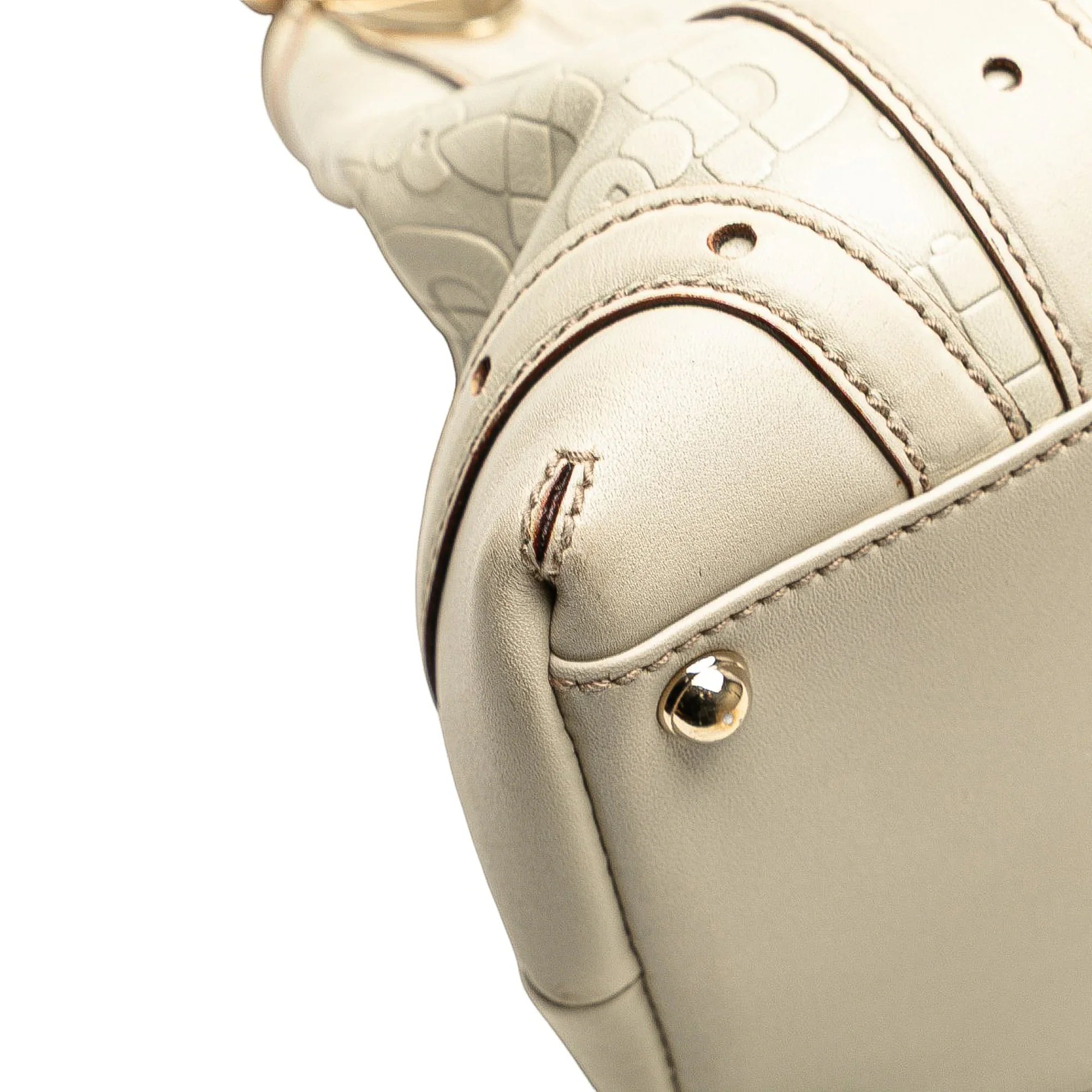 White Gucci Horsebit Embossed Leather Shoulder Bag