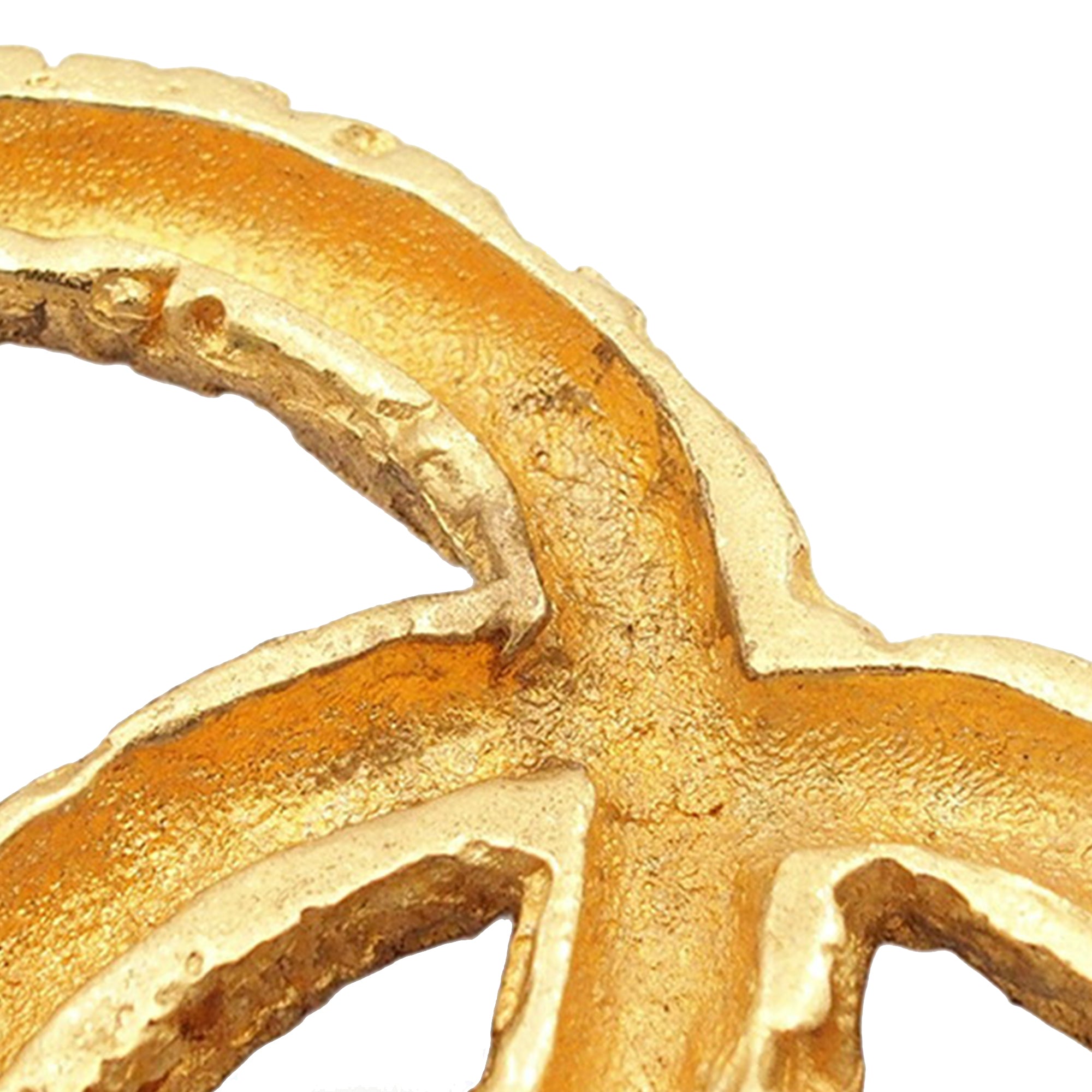 Product Details: Gold Chanel Gold Plated CC Brooch. This brooch features a gold-tone metal body and a back pin closure. 1.4" L x 2" W x 0" D. Serial number 93A.