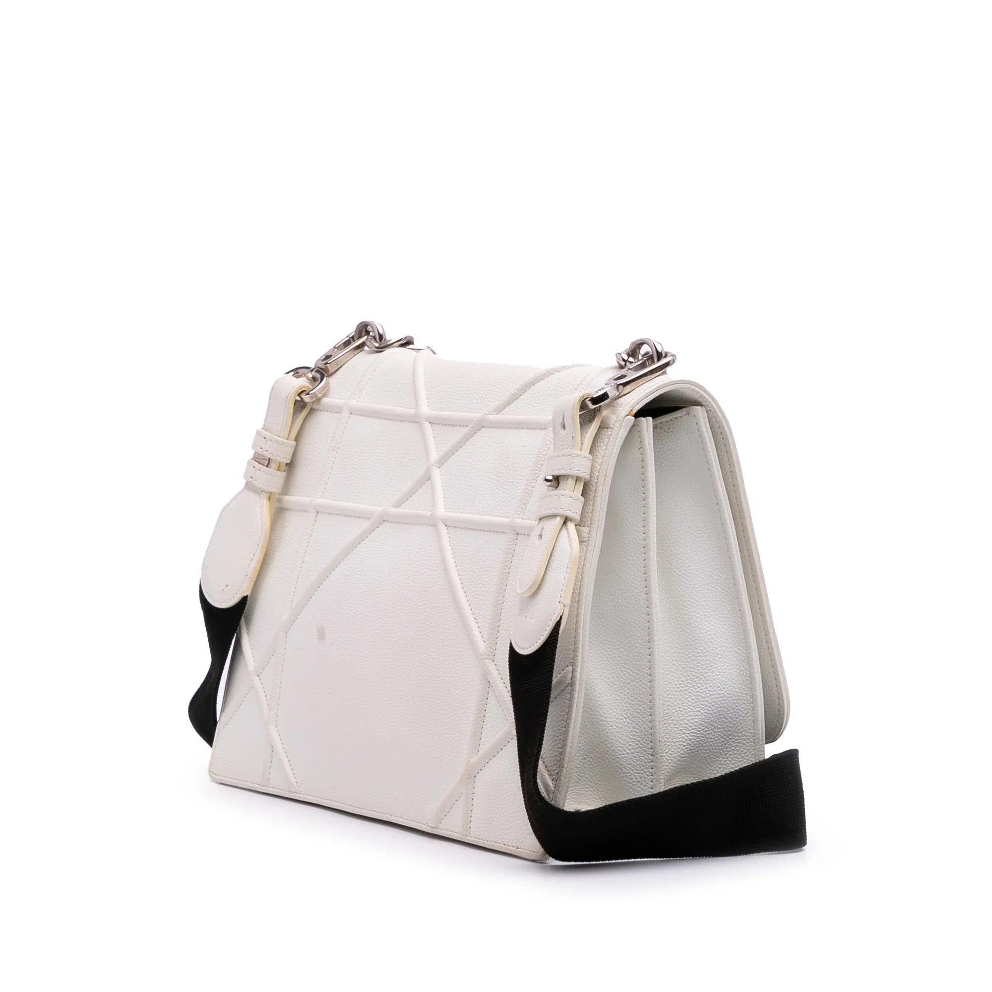 White Dior Large Grained Calfskin Diorama Satchel - Designer Revival White Dior Large Grained Calfskin Diorama Satchel - Designer Revival