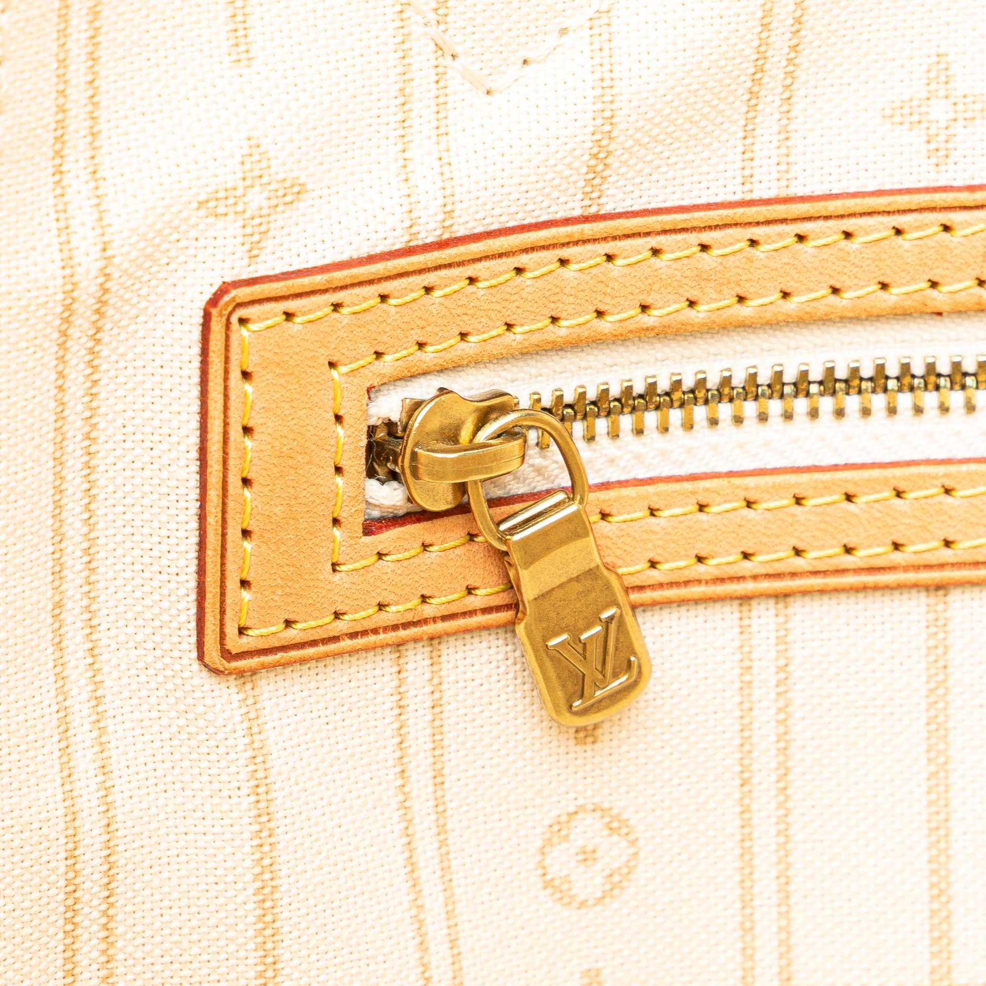 Please note this is a pre-owned item that may display signs of wear consistent with the condition listed above and shown in photos. Designer Revival guarantees this is an authentic White Louis Vuitton Damier Azur Neverfull MM Tote Bag or 100% of your money back. Learn more about our authentication process.