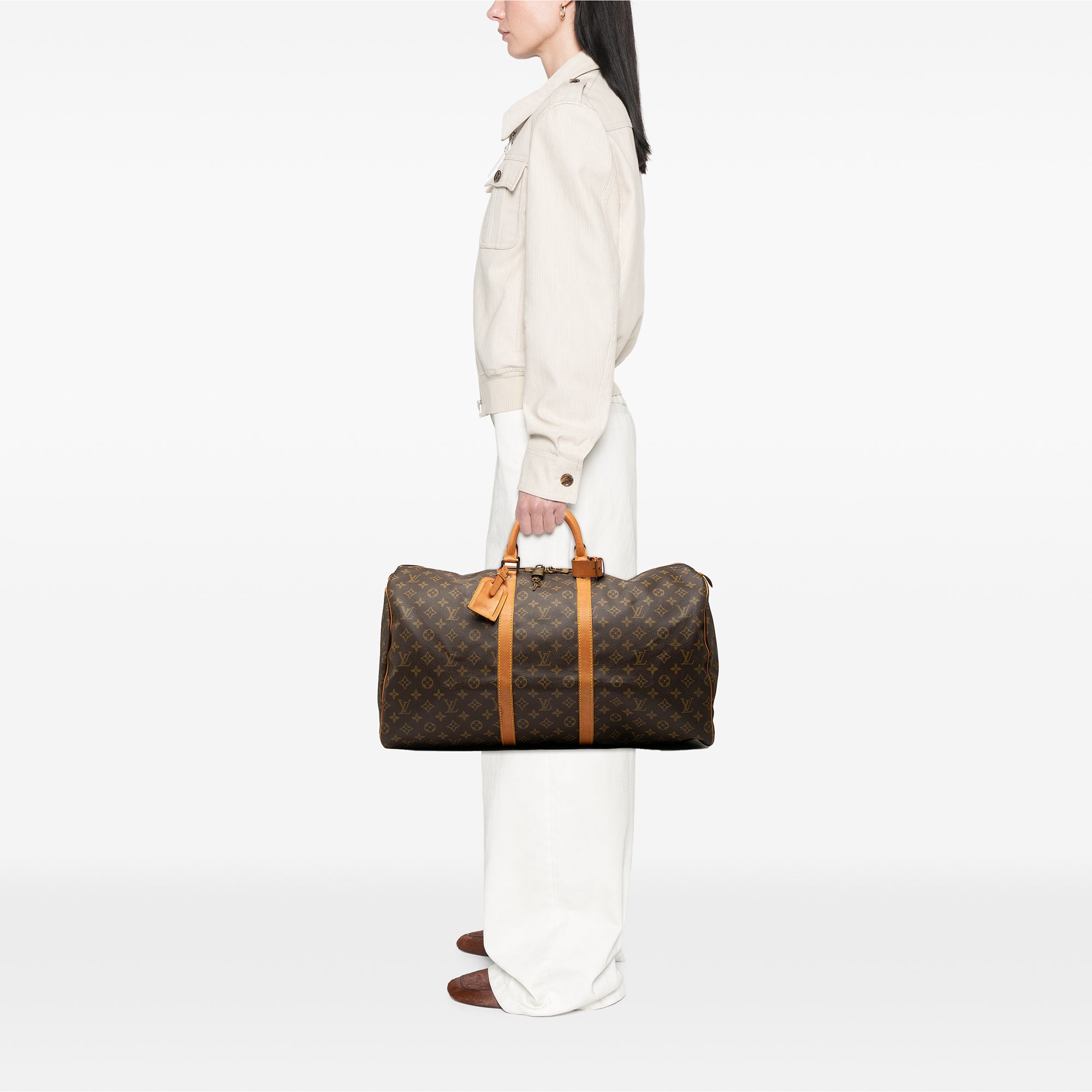 Please note this is a pre-owned item that may display signs of wear consistent with the condition listed above and shown in photos. Designer Revival guarantees this is an authentic Brown Louis Vuitton Monogram Keepall 55 Travel Bag or 100% of your money back. Learn more about our authentication process.