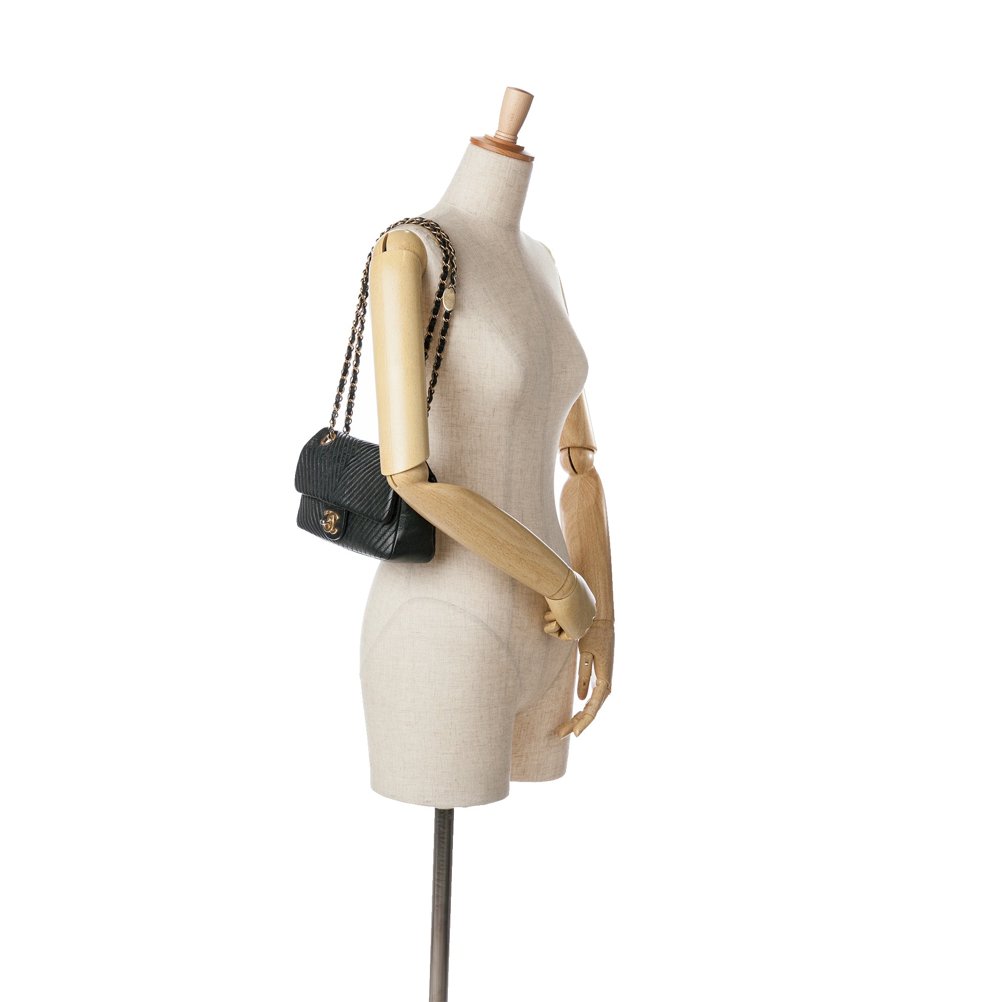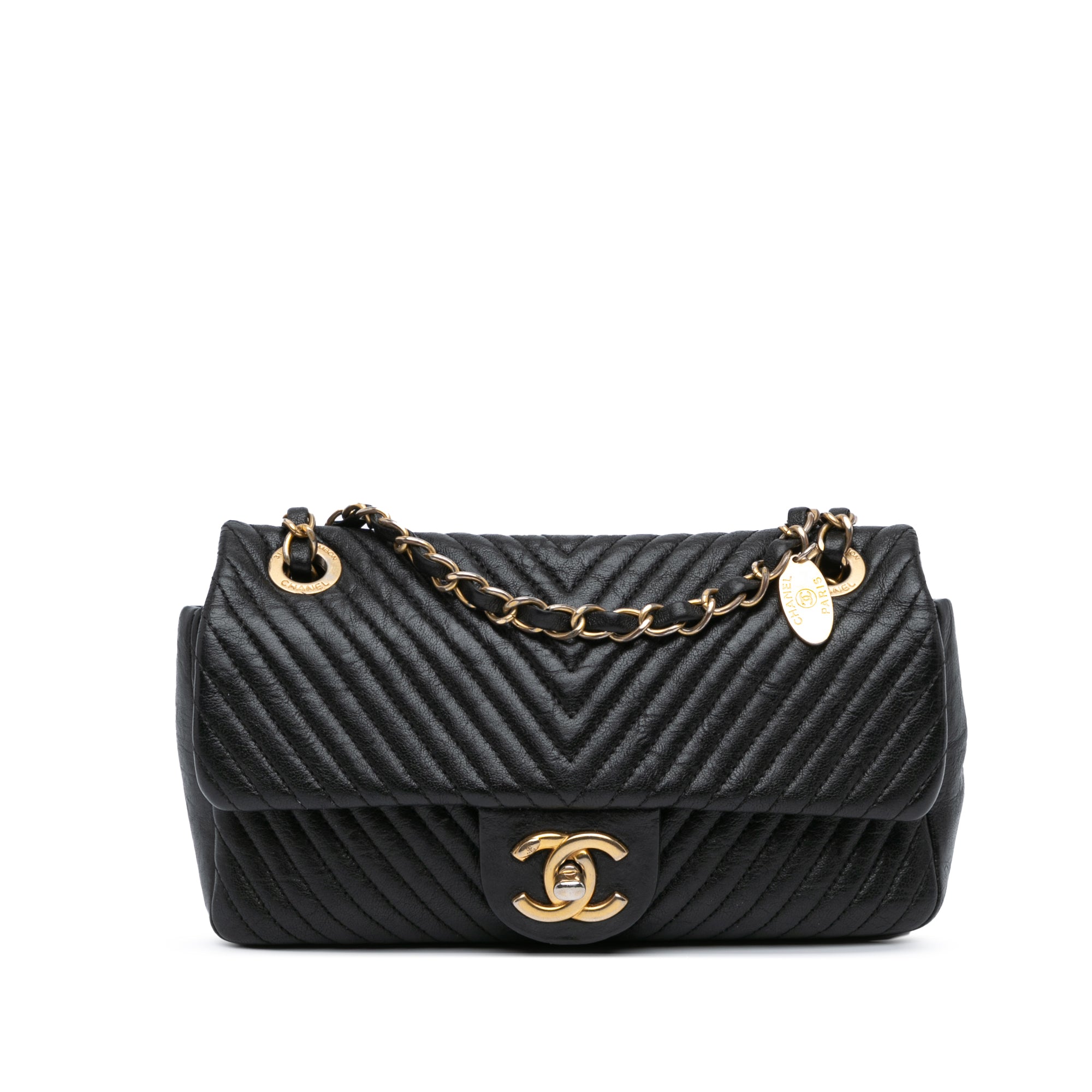 Please note this is a pre-owned item that may display signs of wear consistent with the condition listed above and shown in photos. Designer Revival guarantees this is an authentic Black Chanel Small Chevron Wrinkled Calfskin Medallion Charm Surpique Flap Shoulder Bag or 100% of your money back. Learn more about our authentication process.